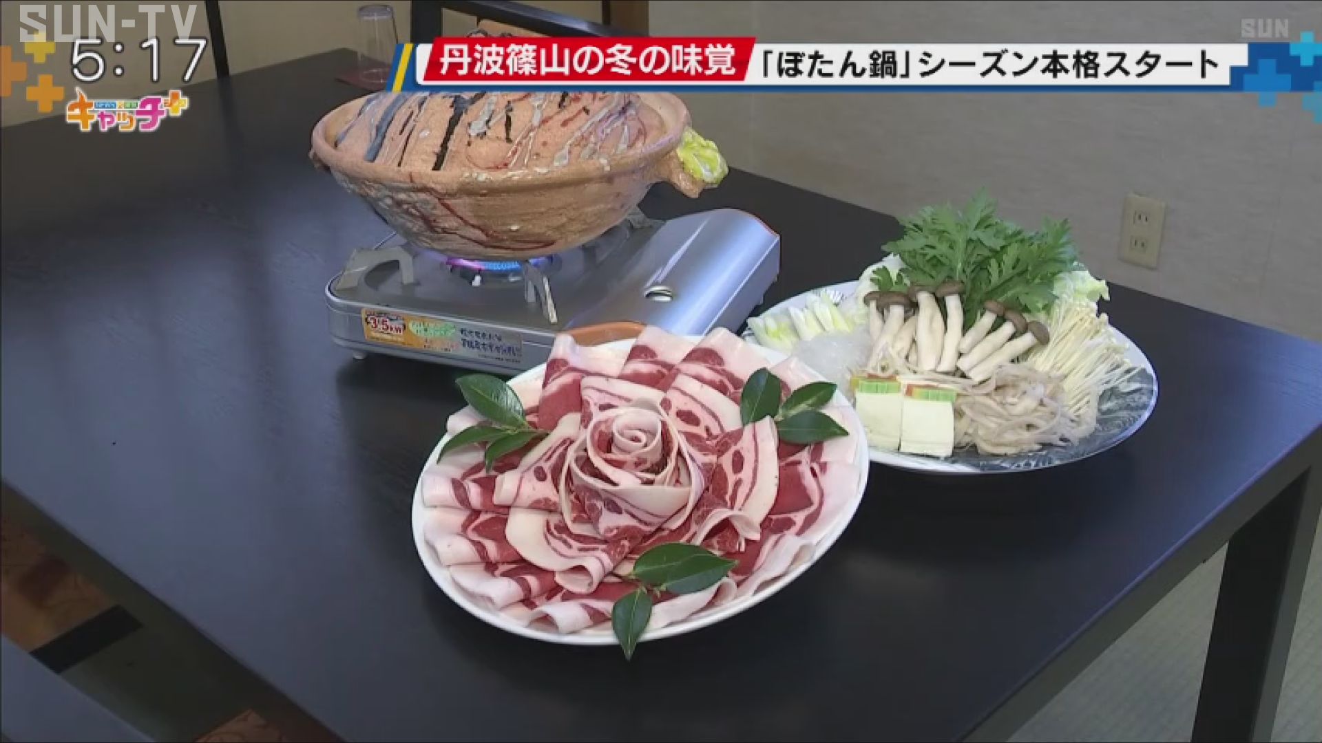11月15日の狩猟解禁に伴い本格的にシーズン入りした丹波篠山市では、観光協会によるぼたん鍋の撮影会が開かれました。