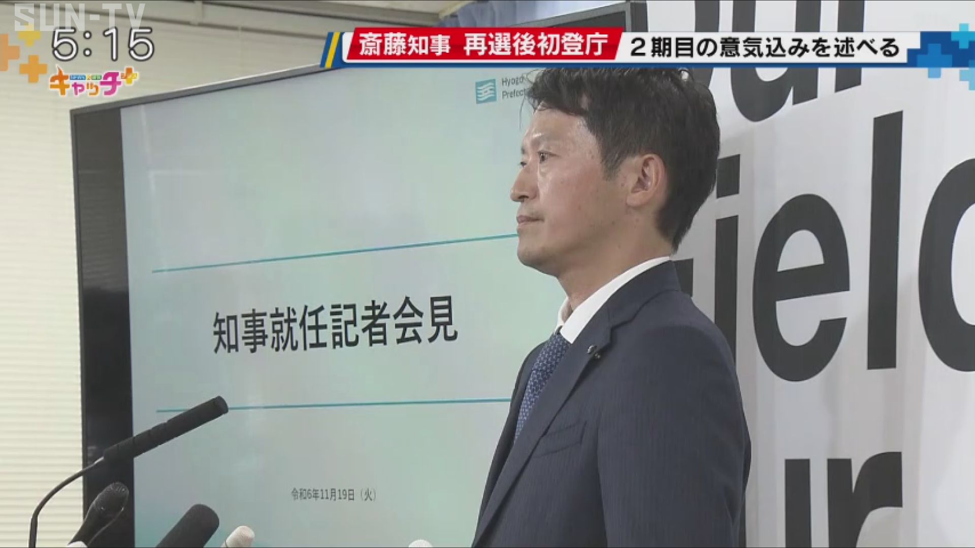 11月17日に投開票された兵庫県知事選挙で、再選を果たした斎藤元彦知事が19日、再選後初めて登庁し、2期目の意気込みを語りました。