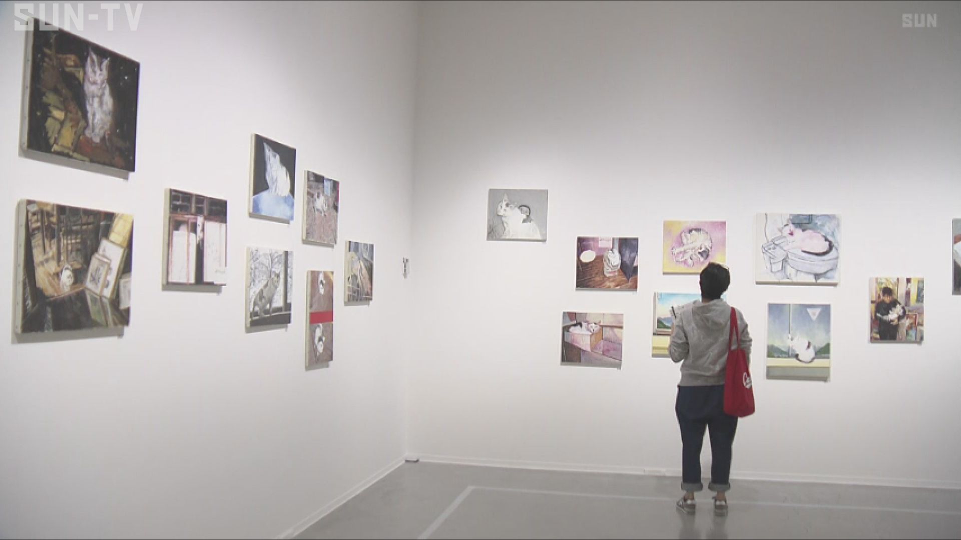 この展覧会はテーマごとに、2つのフロアに分かれていて、「猫」のフロアでは、愛猫のタマがいた日常を切り取ったスケッチや絵画を展示。