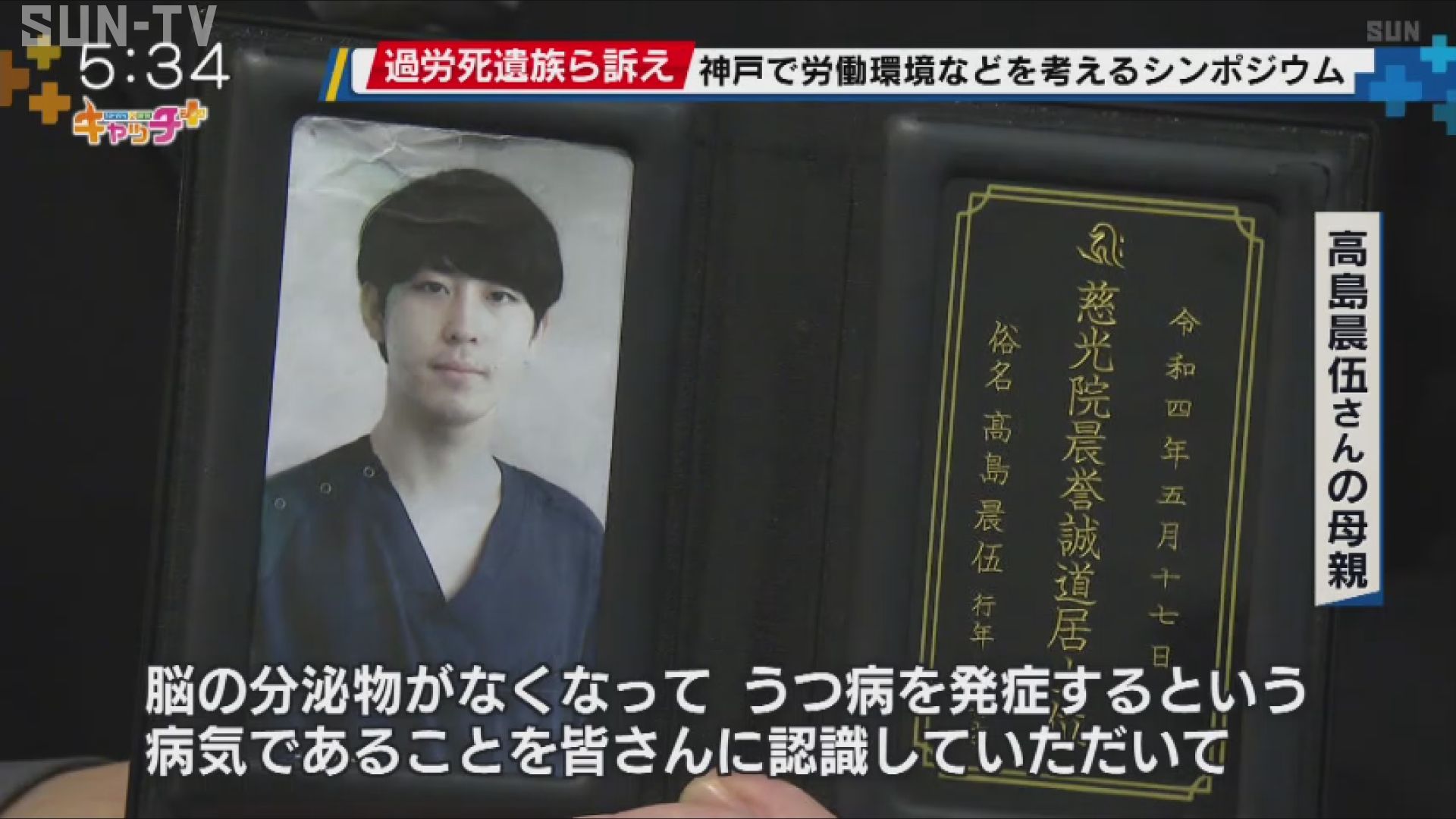 神戸市内で開かれたシンポジウムでは労働環境と健康の関連性を考える基調講演などが行われた後、神戸市内の病院に務めおととし過労で亡くなった医師の高島晨伍さん(当時26歳)の母親が家族を失った悲しみや働き方の改善を訴えました。