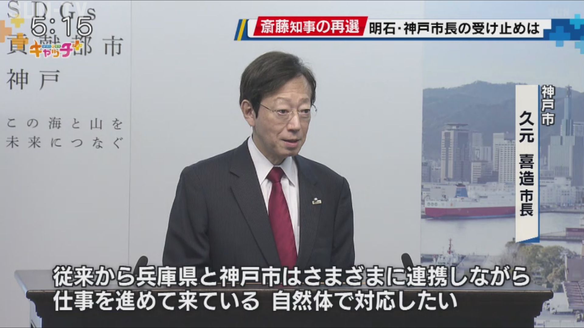「従来から兵庫県と神戸市はさまざまに連携しながら仕事を進めて来ている。 自然体で対応したい。元町の北側の再開発については兵庫県庁の庁舎の整備と関連しますので、兵庫県において具体的な整備の考え方を示していただき、協議をすることができればという風に考えています」