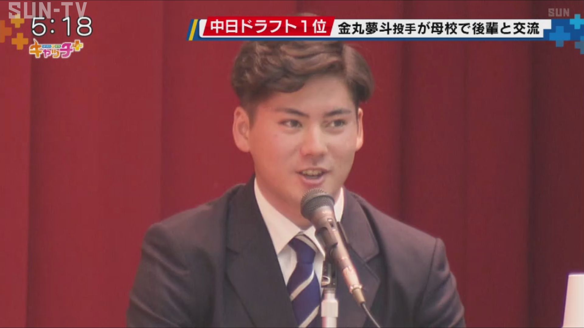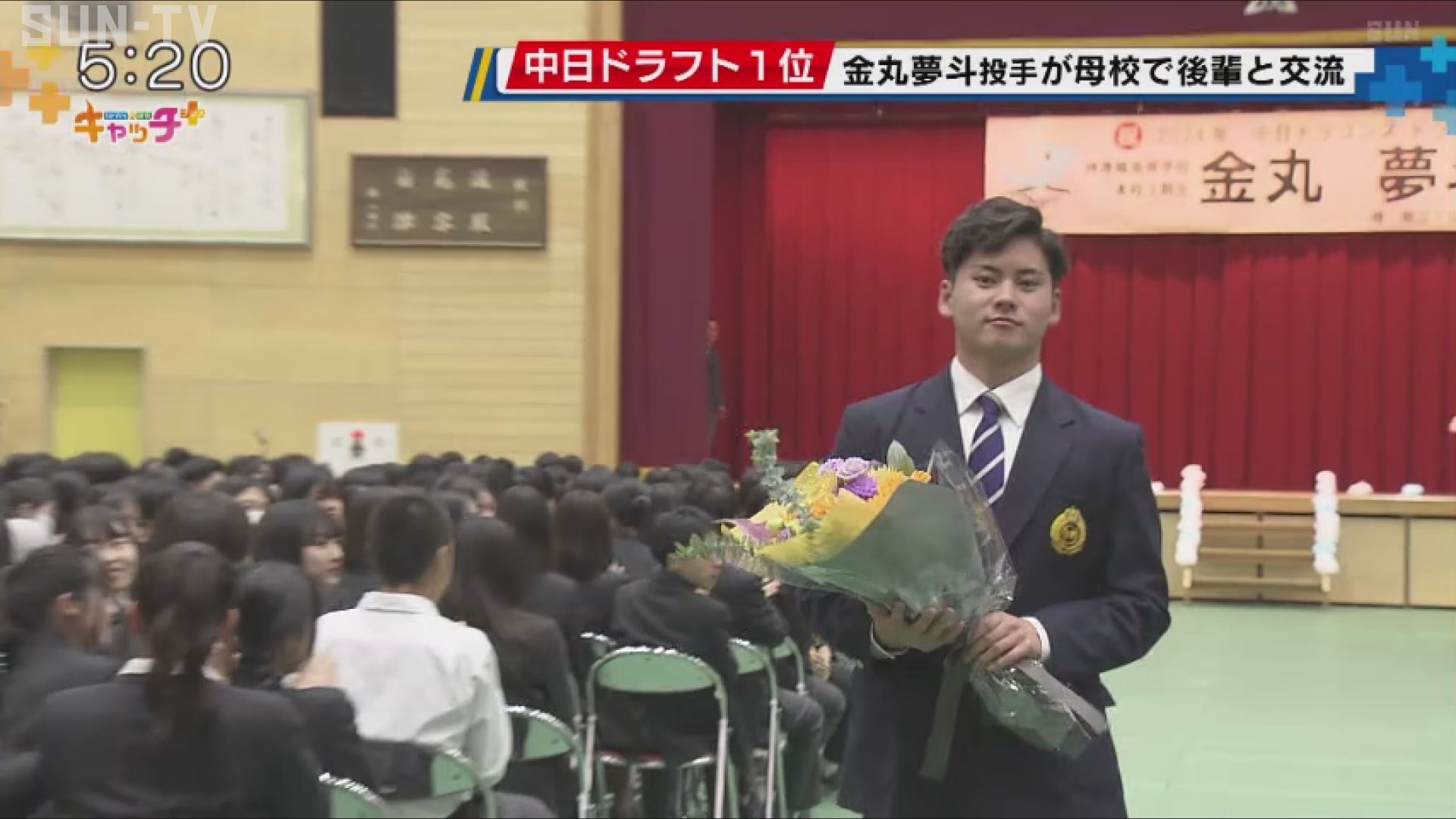 ことしのプロ野球ドラフト会議で、中日ドラゴンズから1位指名を受けた金丸夢斗投手が、神戸市の母校を訪れ、後輩たちと交流を深めました。