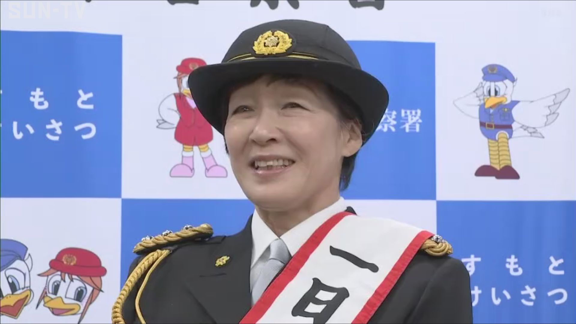 洲本警察署の一日署長に任命されたのは、洲本市出身の俳優、キムラ緑子さんです。
