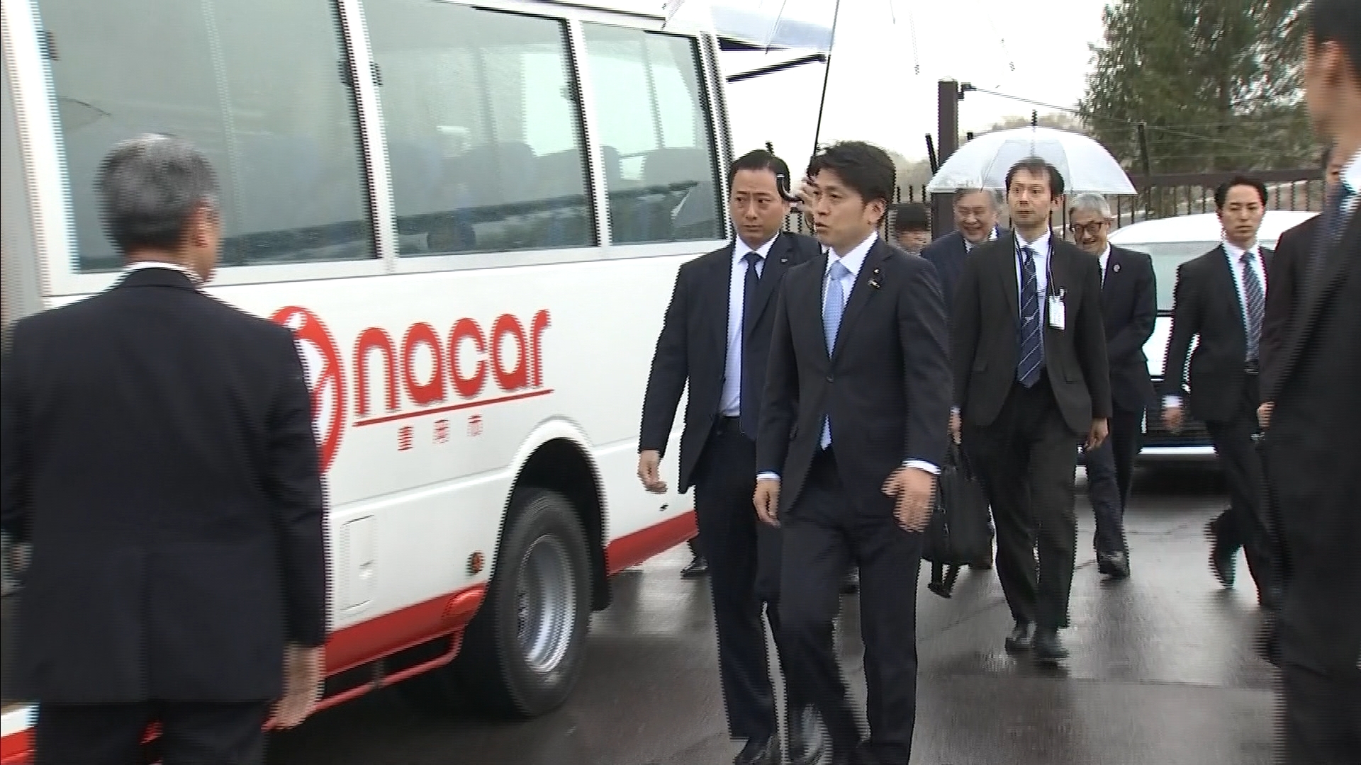 コウノトリ但馬空港を訪れた中野洋昌大臣は豊岡市の関貫久仁郎市長らと面談し、市が取り組んでいる「公共ライドシェア」について説明を受けました。