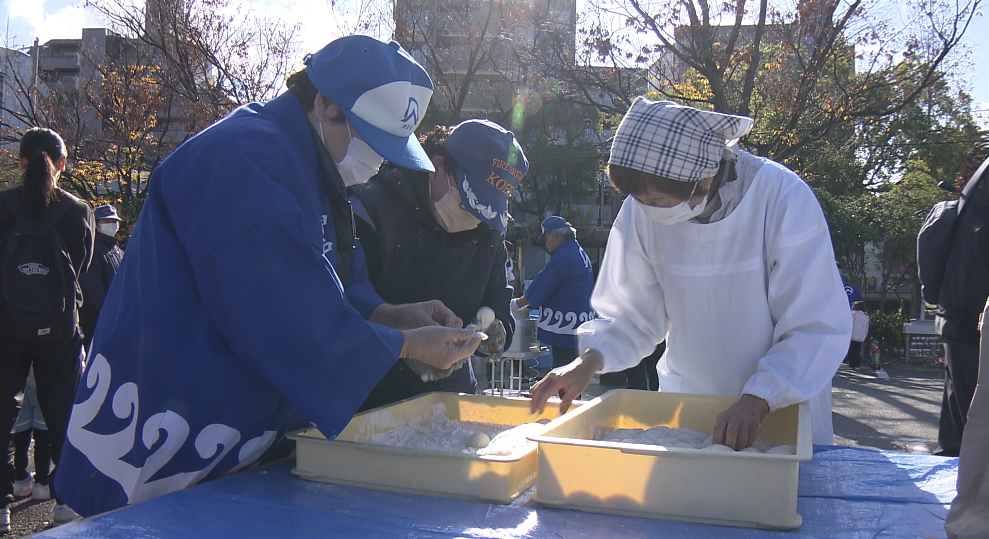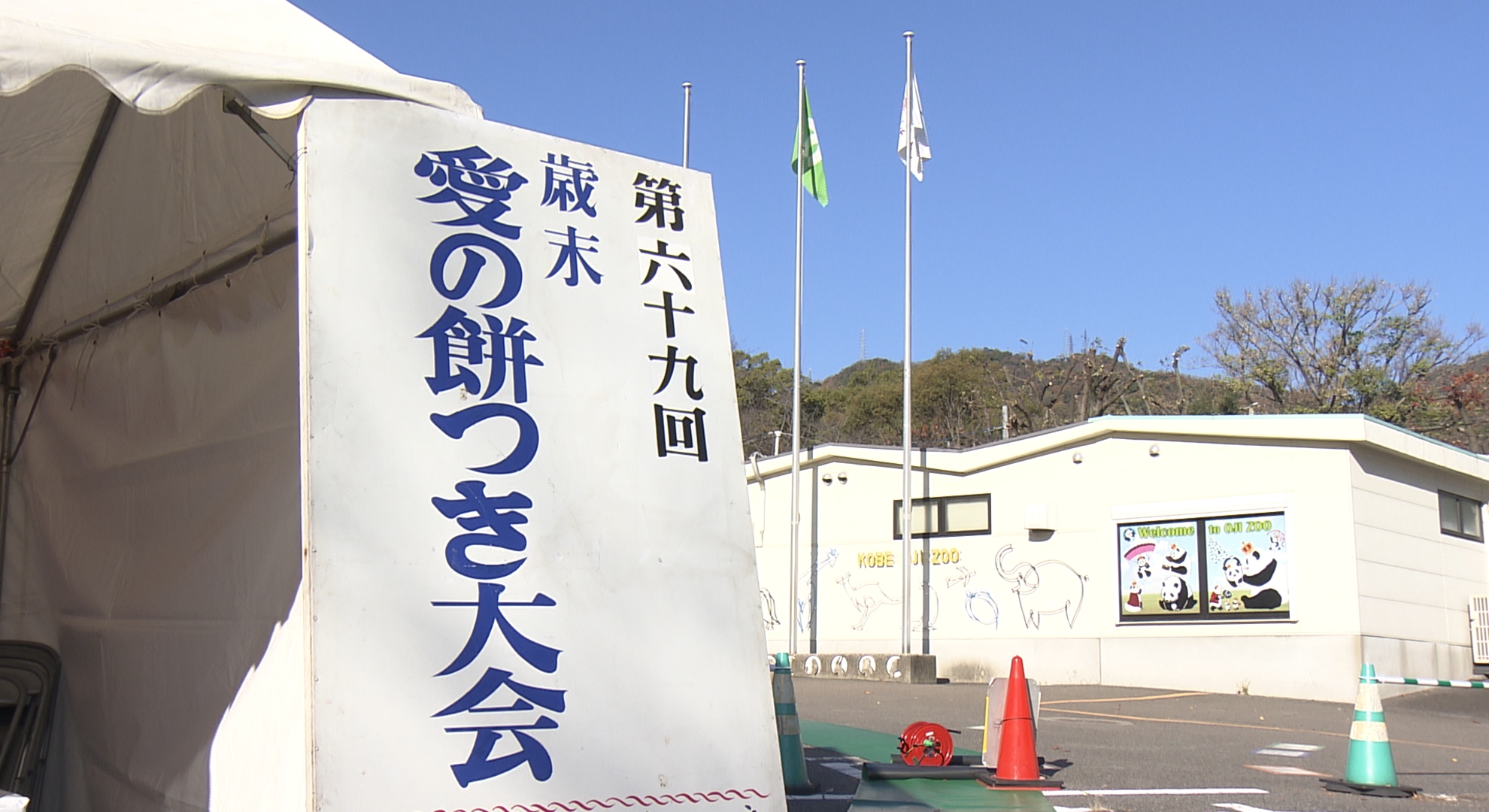 神戸市灘区の王子動物園前で開かれた「歳末愛の餅つき大会」は、子どもたちに日本の伝統行事を伝えようと、灘区の自営業者を中心としたボランティア団体・神戸楽生会と灘区役所がこの時期に行っていて、今回で69回目です。