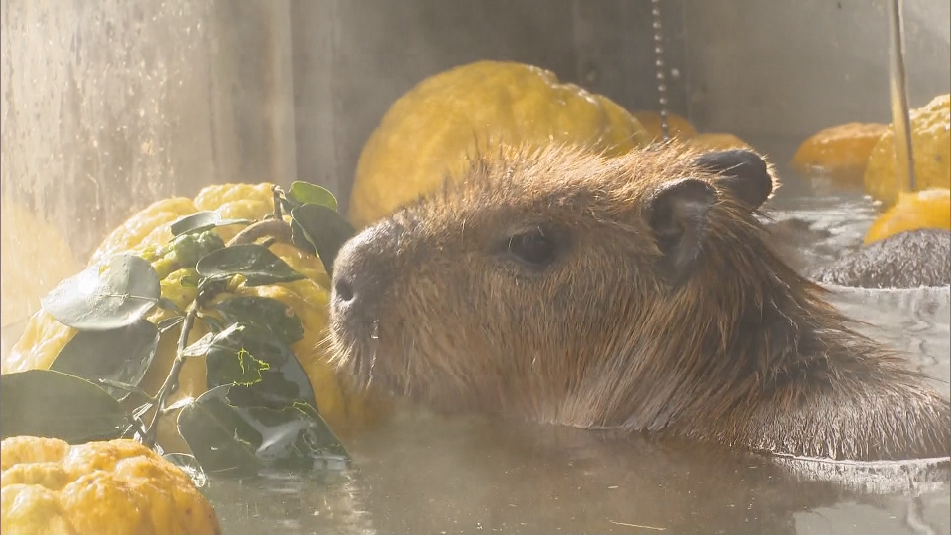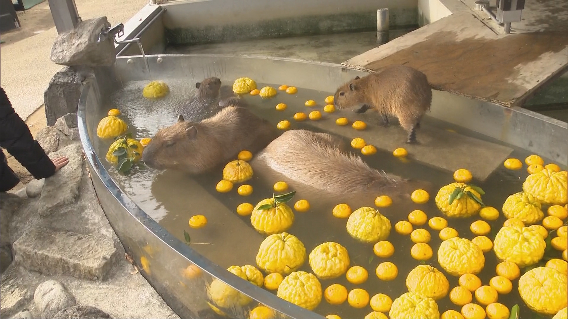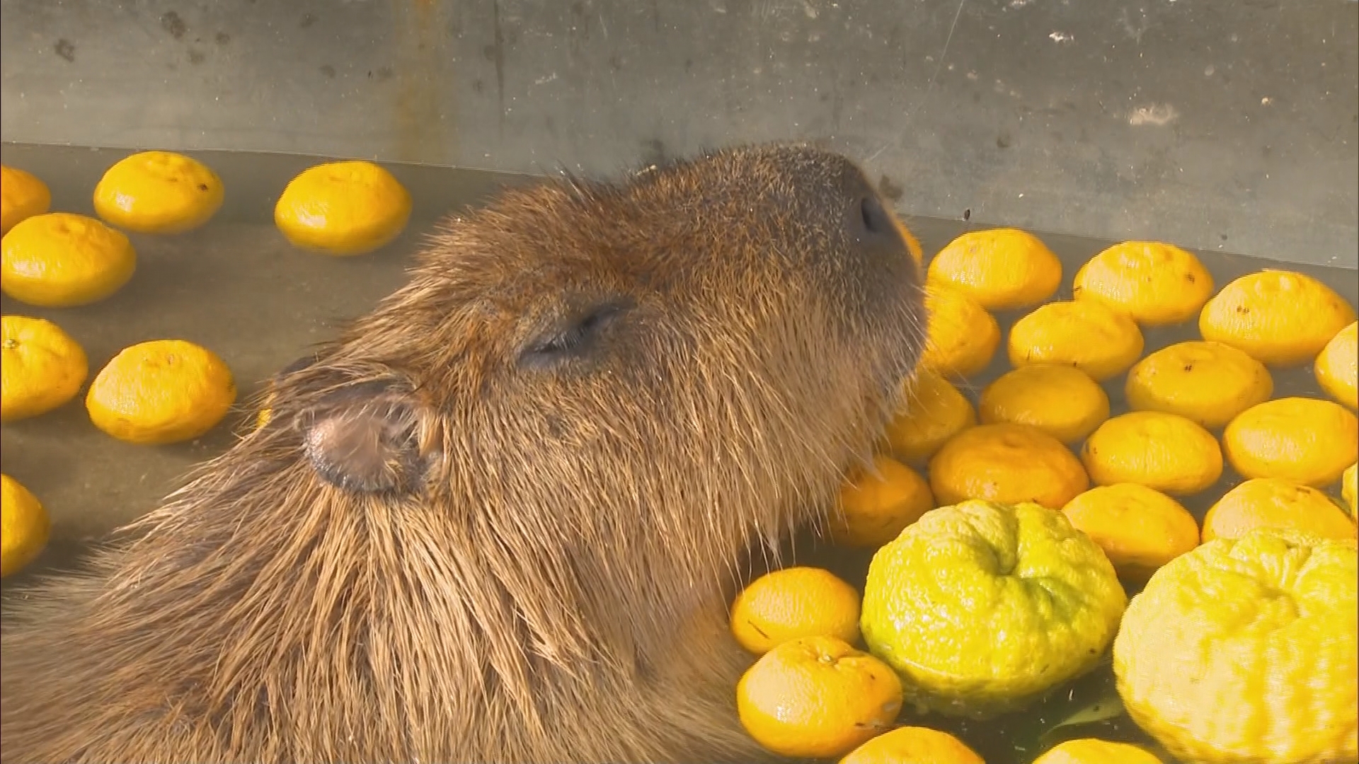 訪れた人たちからは「ゆず湯に入ってあたたかそう」「気持ちよさそう、今度家でもゆず風呂をしようと思う。カピバラたちと一緒に入りたいくらい」などといった声が聞かれました。