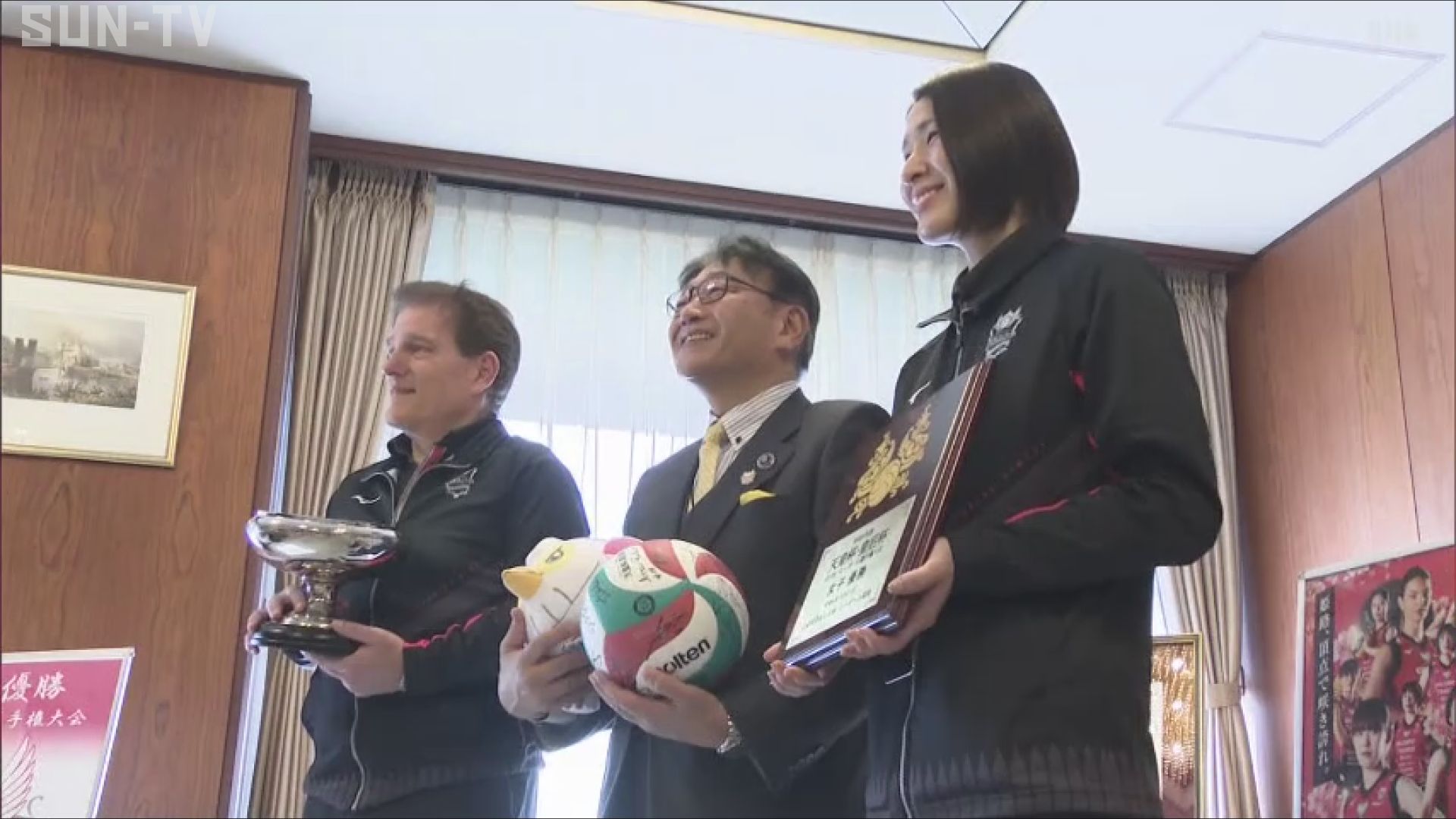 皇后杯で初優勝を果たした女子プロバレーボールチームのヴィクトリーナ姫路が、姫路市の清元市長を表敬訪問しました。