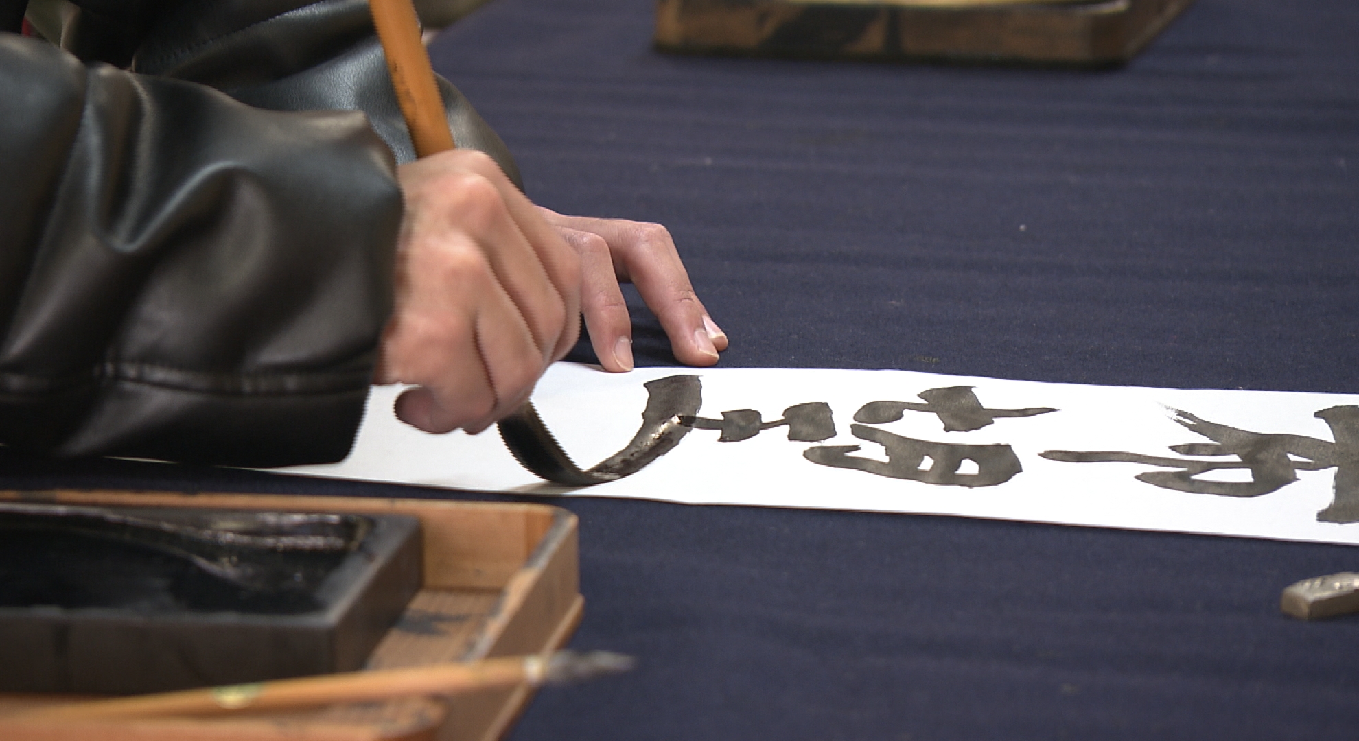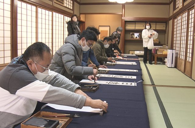 学問の神様・菅原道真が祭られている兵庫県神戸市の北野天満神社では新春恒例の書き初め大会が開かれ、参拝客が2025年の抱負を筆でしたためました。