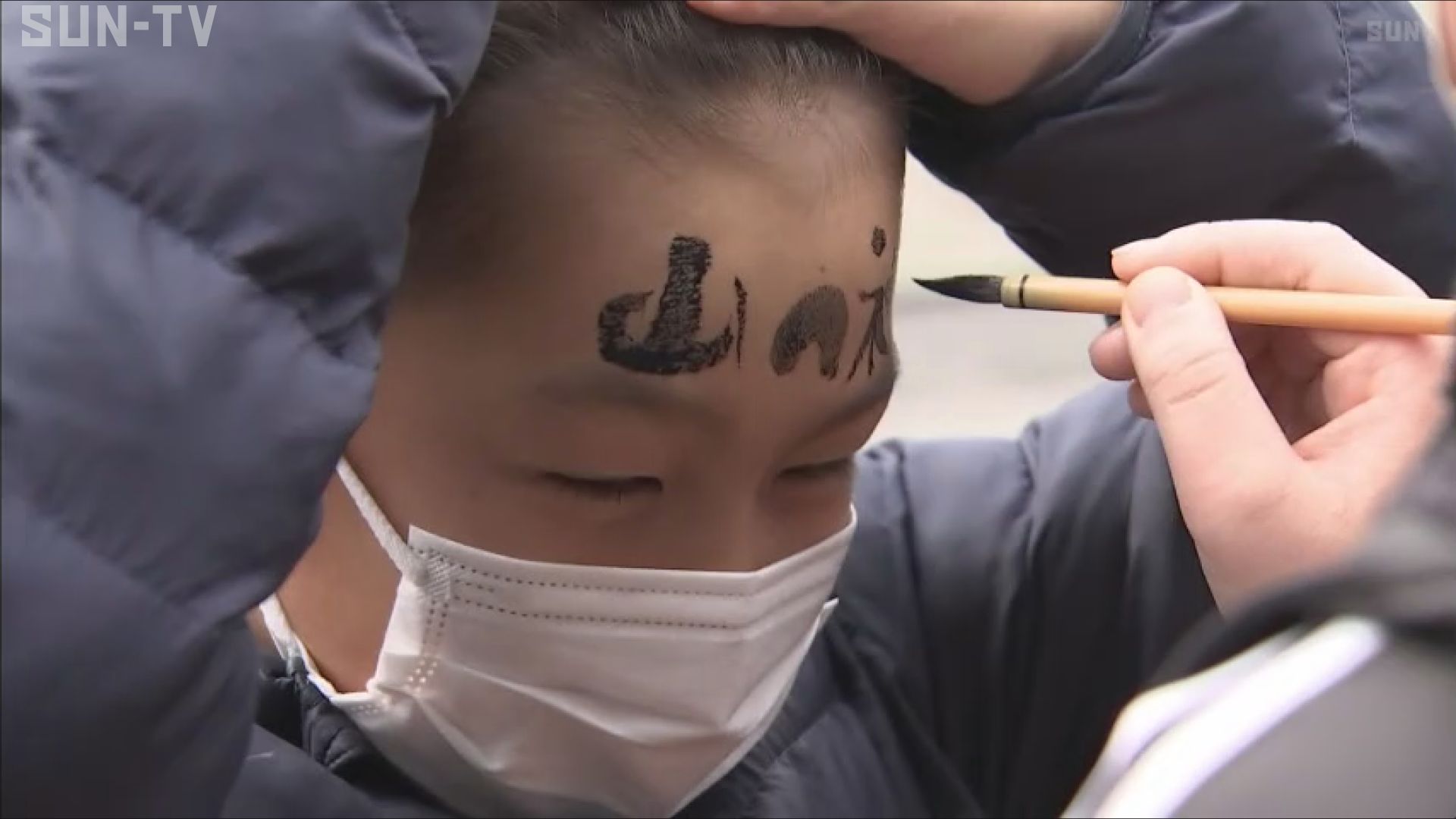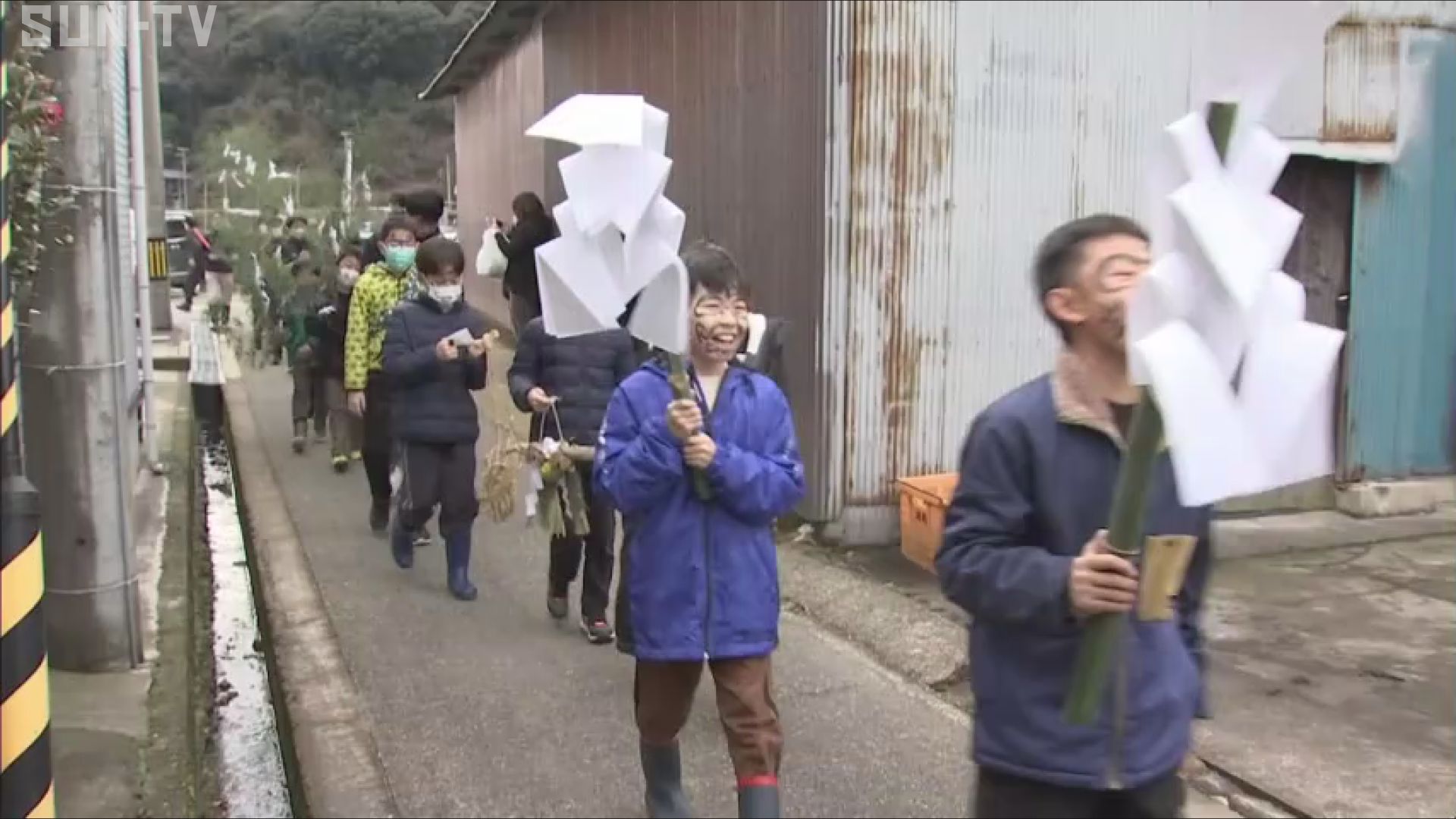 兵庫県香美町では、顔に墨を塗った子どもたちが山の神にお供え物を届ける伝統行事が行われました。