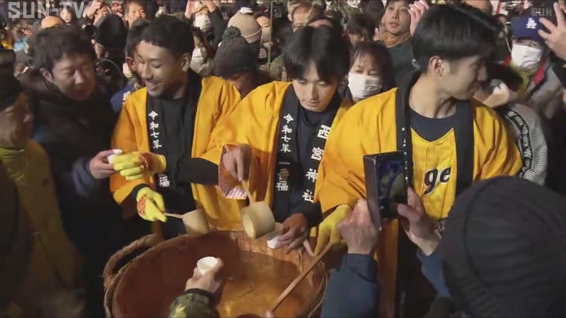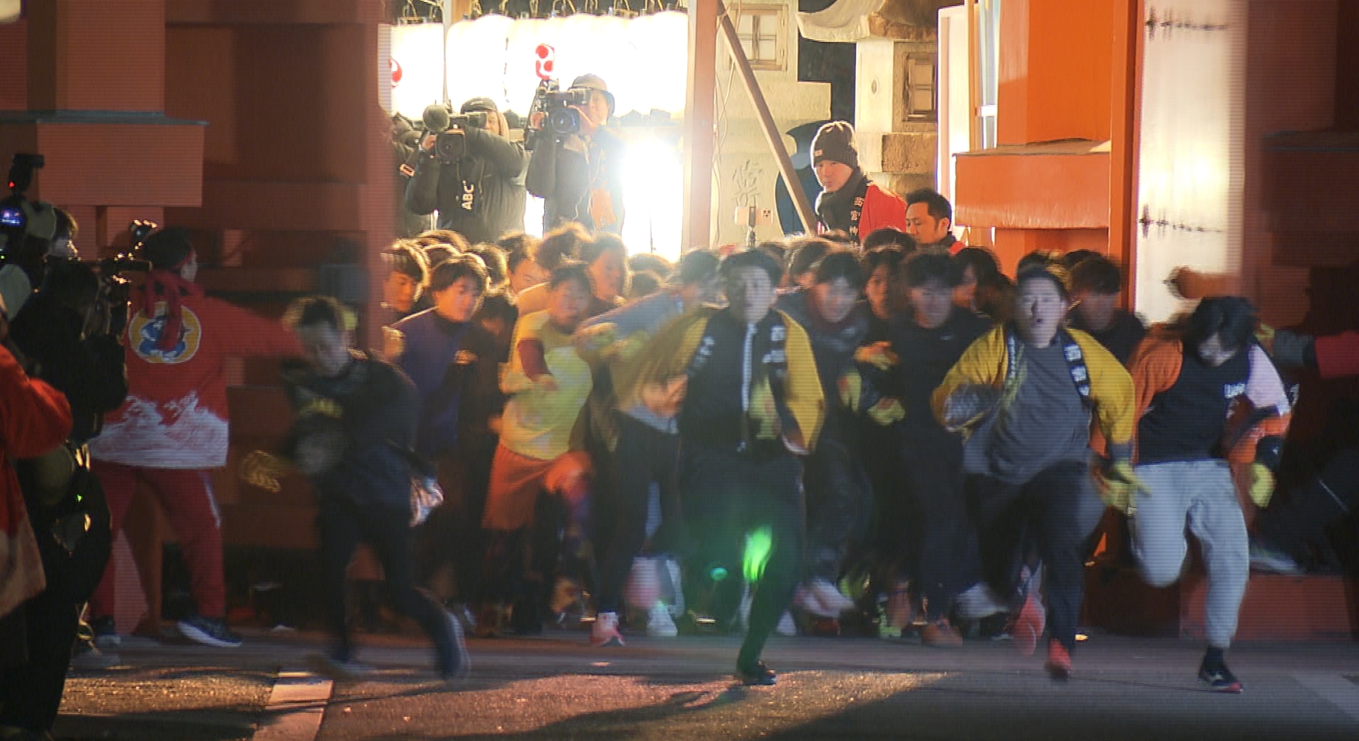 参拝一番乗りを目指し境内を全速力で駆け抜ける、新年恒例の「福男選び」が10日朝、西宮神社で行われました。
