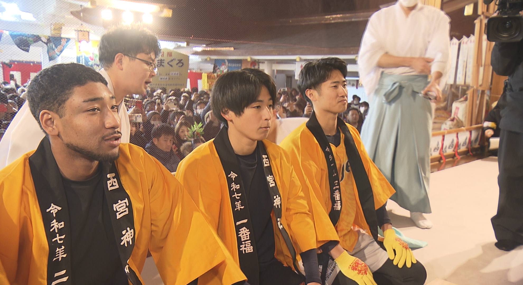 3人はことし1年、福を分け与える「福男」として過ごします。