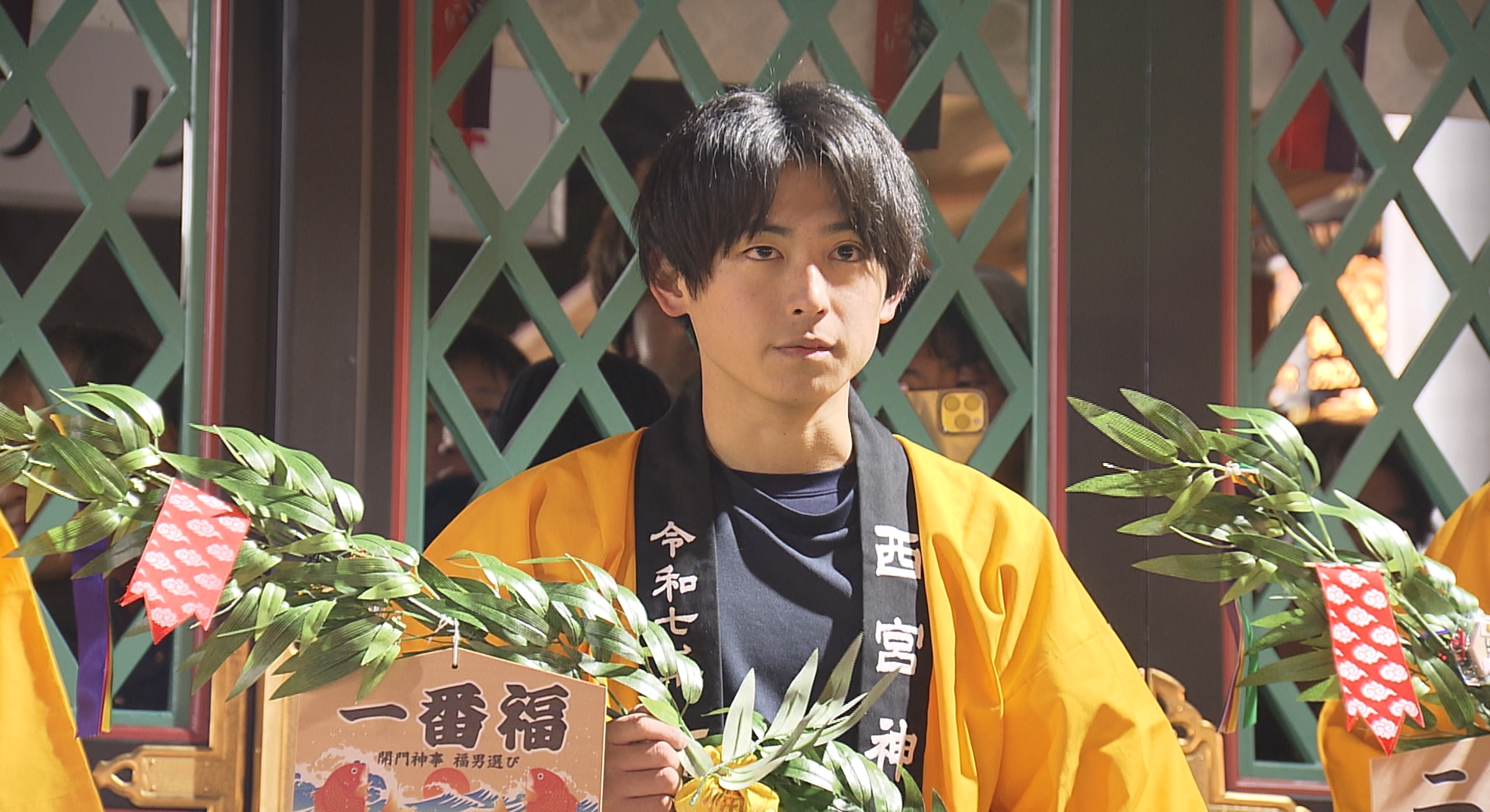 二番福は龍谷大学3年生の小松勇輝クワァベナさん(21)、三番福は同志社大学4年生の矢吹彰大さん(22)。