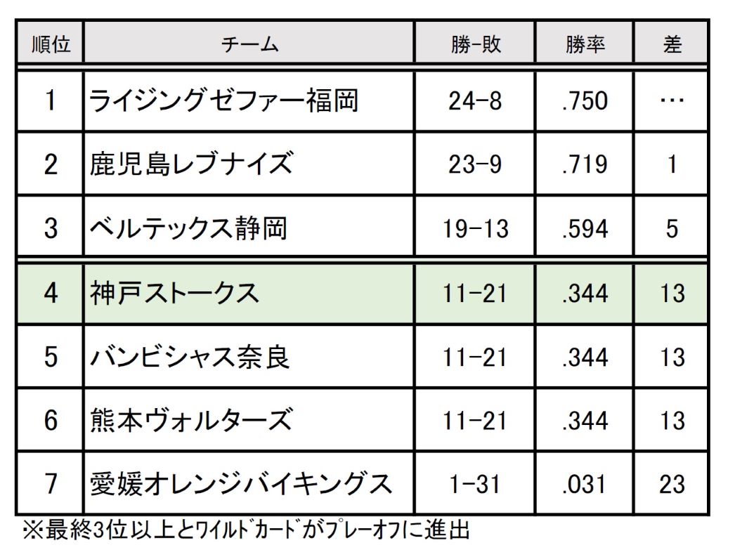 通算成績は11勝21敗と“借金”が「10」に達し、B2西地区4位は変わらないものの、5位奈良、6位熊本と勝率で並ばれ、プレーオフ進出圏内と差が付き始めている。