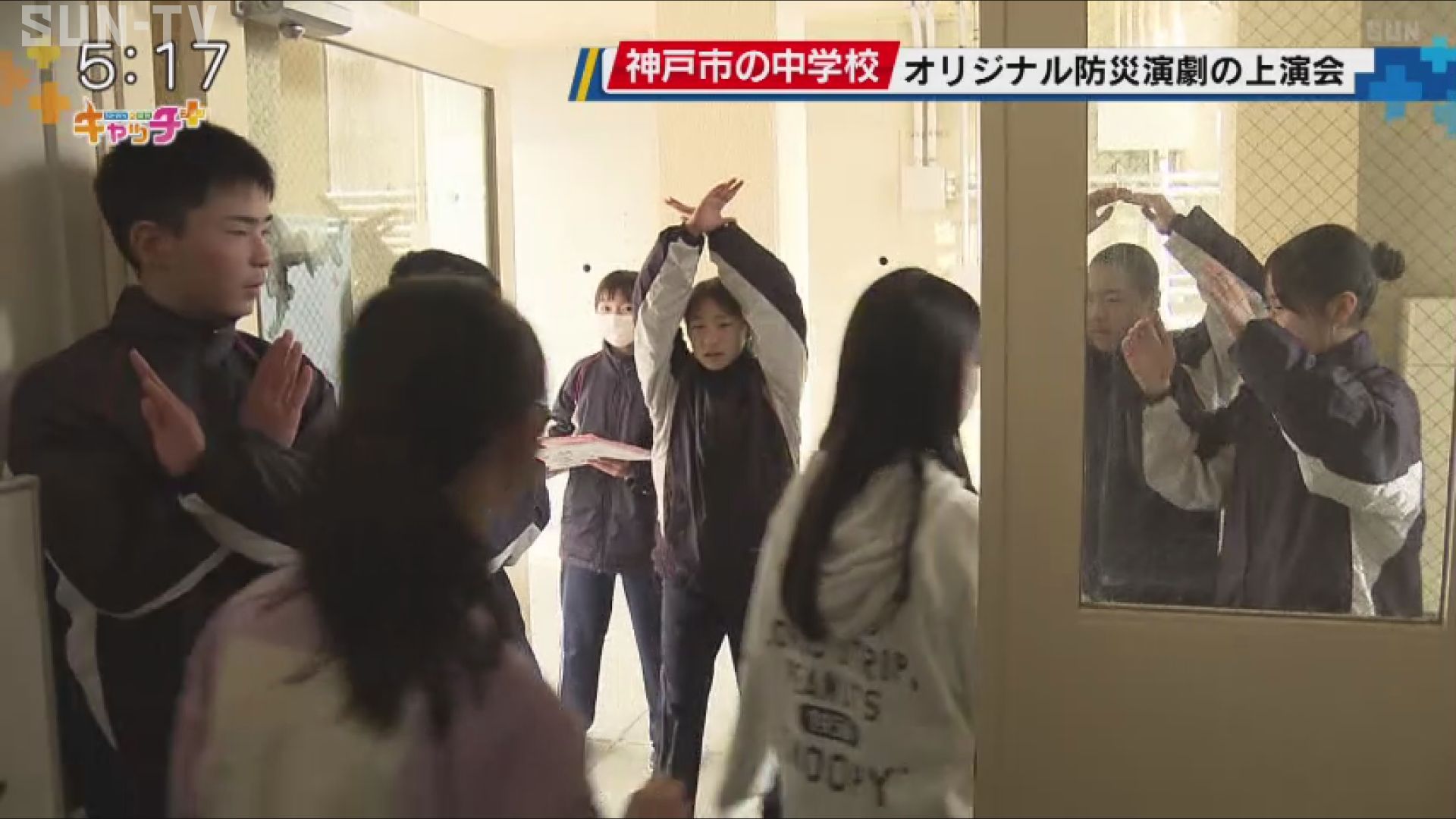 神戸市の中学校では、防災と減災をテーマにしたオリジナル演劇の上演会が行われました。