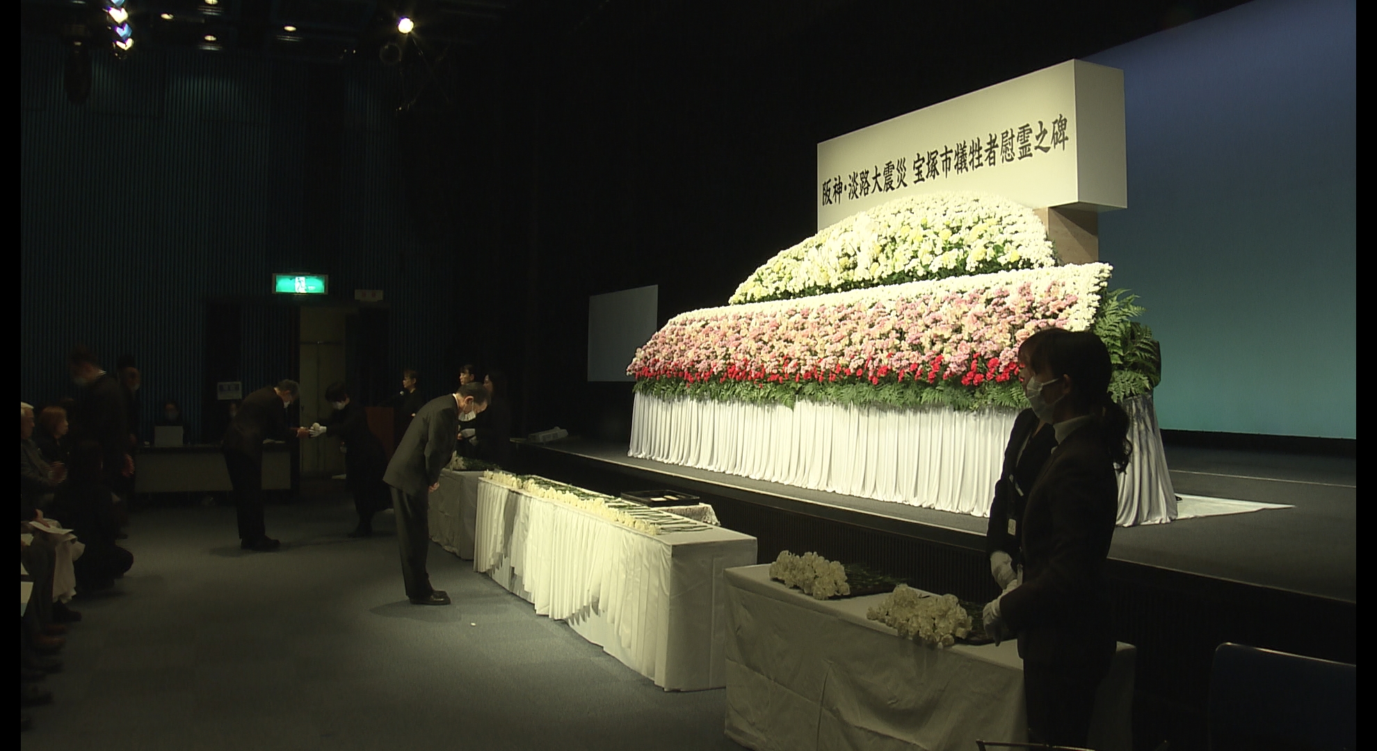 阪神淡路大震災で119人が犠牲となった宝塚市で犠牲者慰霊式 2025.01.1722:10 地域・まち 宝塚市で開かれた慰霊式 阪神淡路大震災で119人が犠牲となった宝塚市で慰霊式が開かれました。 式には、宝塚市内で犠牲となった119人の遺族など約300人が参列しました。 管弦楽団の追悼演奏の後、震災で父と妻を亡くした長谷川宜正さんがあいさつしました。 参列者は献花台に花を手向け、犠牲者を悼んでいました。 #宝塚市 #慰霊式 #阪神淡路大震災 記事のギャラリーを見る ニュース一覧へ戻る