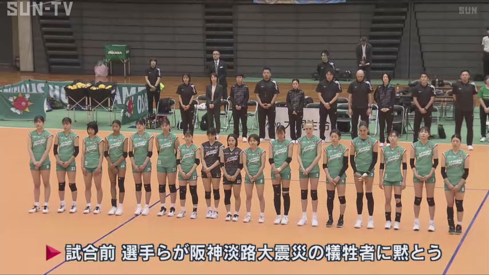 阪神淡路大震災から30年を迎えた神戸で、バレーボールチーム「大阪マーヴェラス」の選手らが犠牲者に黙とうを捧げました。兵庫県神戸市のグリーンアリーナ神戸で行われたSVリーグ女子「大阪マーヴェラス」と「KUROBEアクアフェアリーズ」の試合前、選手らが阪神淡路大震災の犠牲者に黙とうを捧げました。