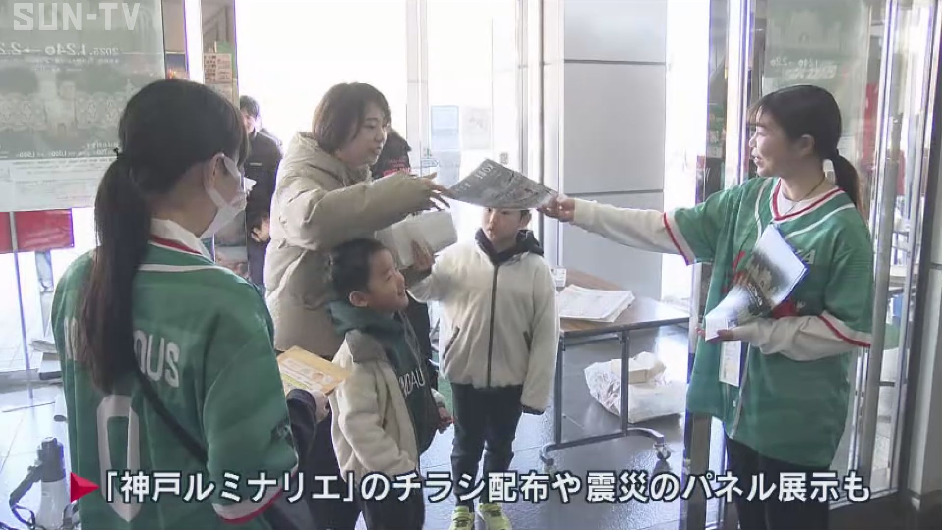 会場では1月24日から開かれる「神戸ルミナリエ」のチラシ配布や、震災に関するパネル展示も行われました。