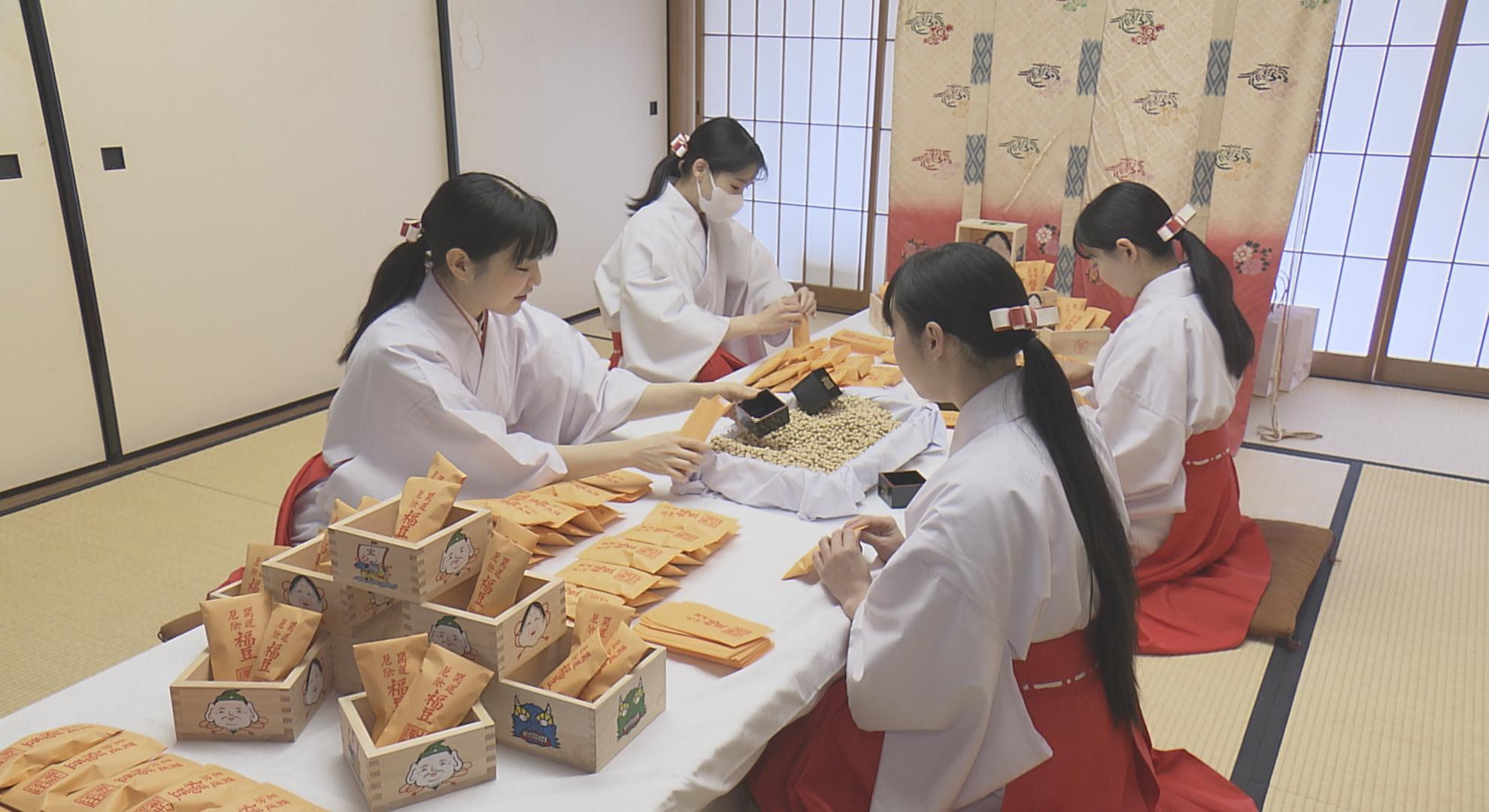 2月の節分を前に、神戸市の生田神社では、豆をまく神事で使う福豆の袋詰め作業が進んでいます。