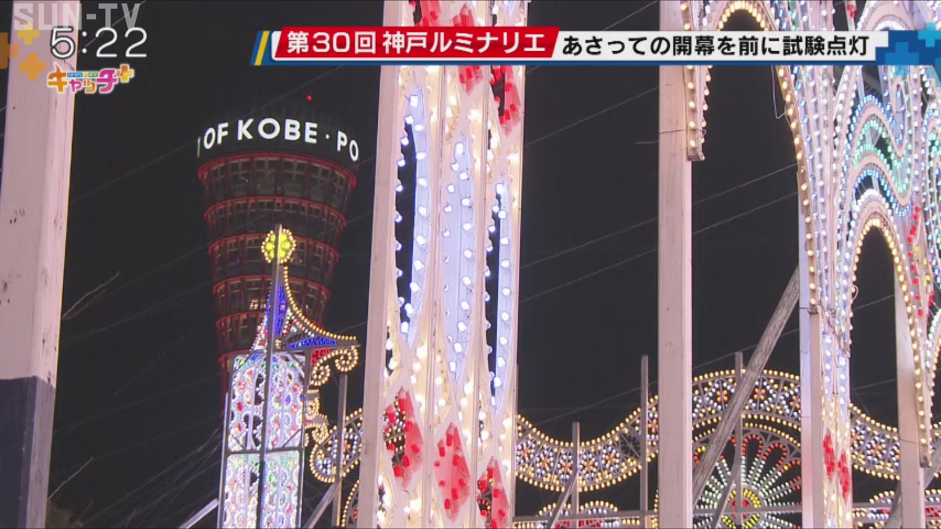 阪神淡路大震災の犠牲者を追悼し、教訓を継承する「神戸ルミナリエ」が1月24日に開幕するのを前に、21日、試験点灯が行われました。