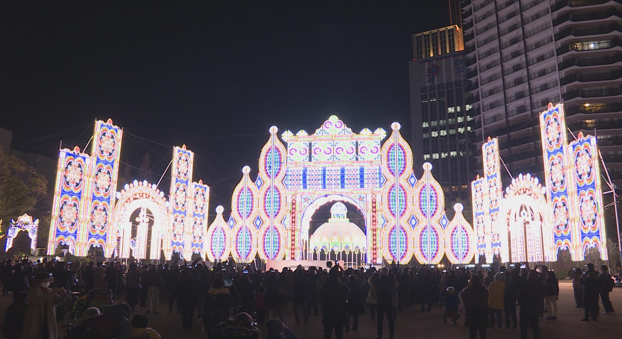 神戸市中央区の東遊園地では、約7000人がひと足早く「光の芸術」を楽しんでいました。