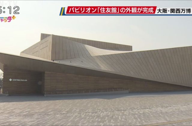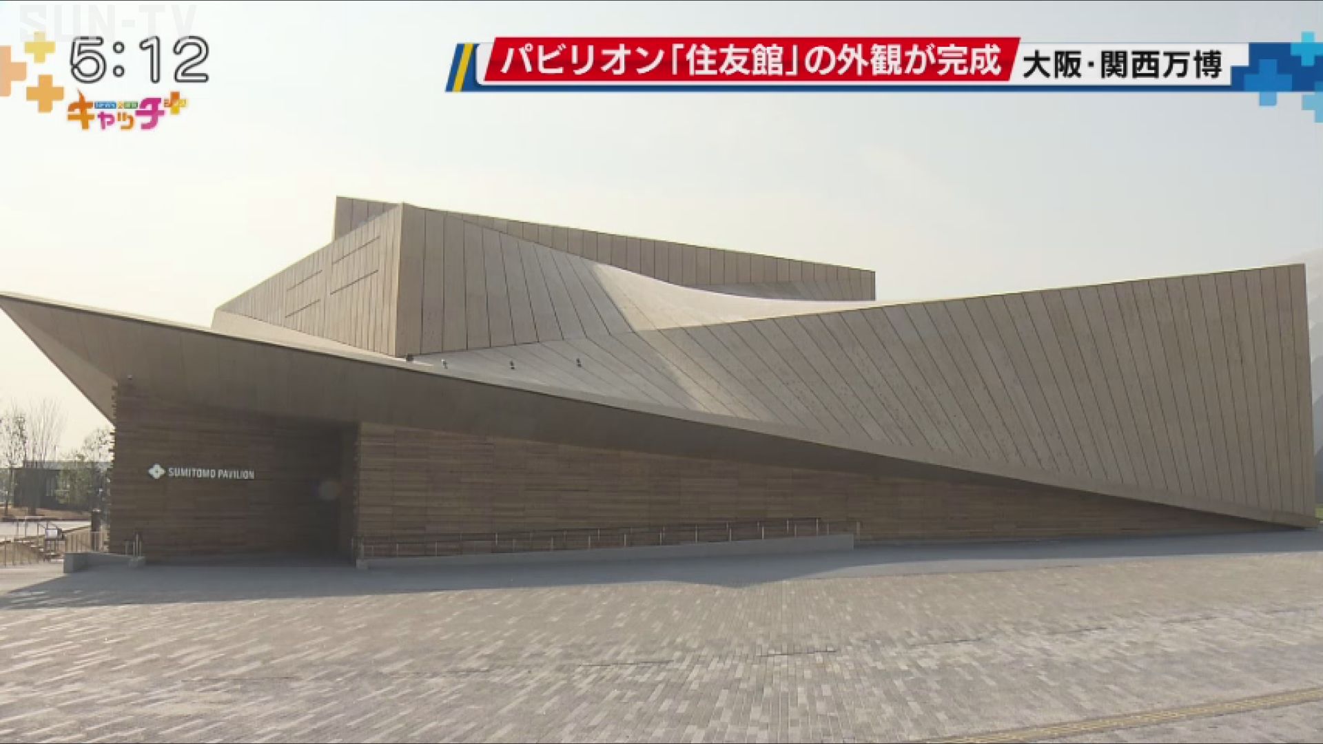 4月13日から開幕する大阪・関西万博を前に、住友グループのパビリオン「住友館」の外観が完成し、23日、報道陣に公開されました。