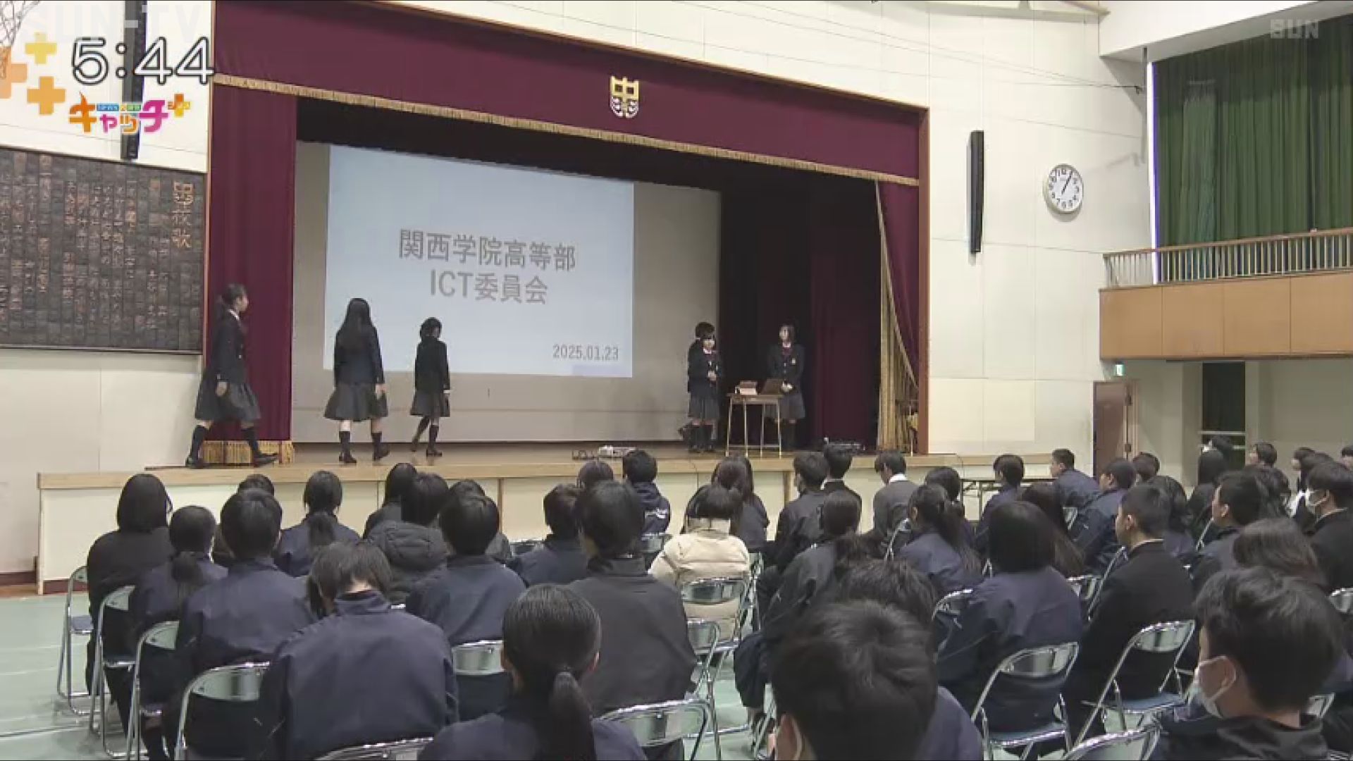 このフォーラムは、中学生がスマートフォンの利用によるトラブルや犯罪に巻き込まれないよう開かれたもので、神戸市立布引中学校の生徒130人と、ネットリテラシーの向上に向けた講演活動などに取り組む、関西学院高等部ICT(アイシーティ)委員会の生徒7人が参加しました。