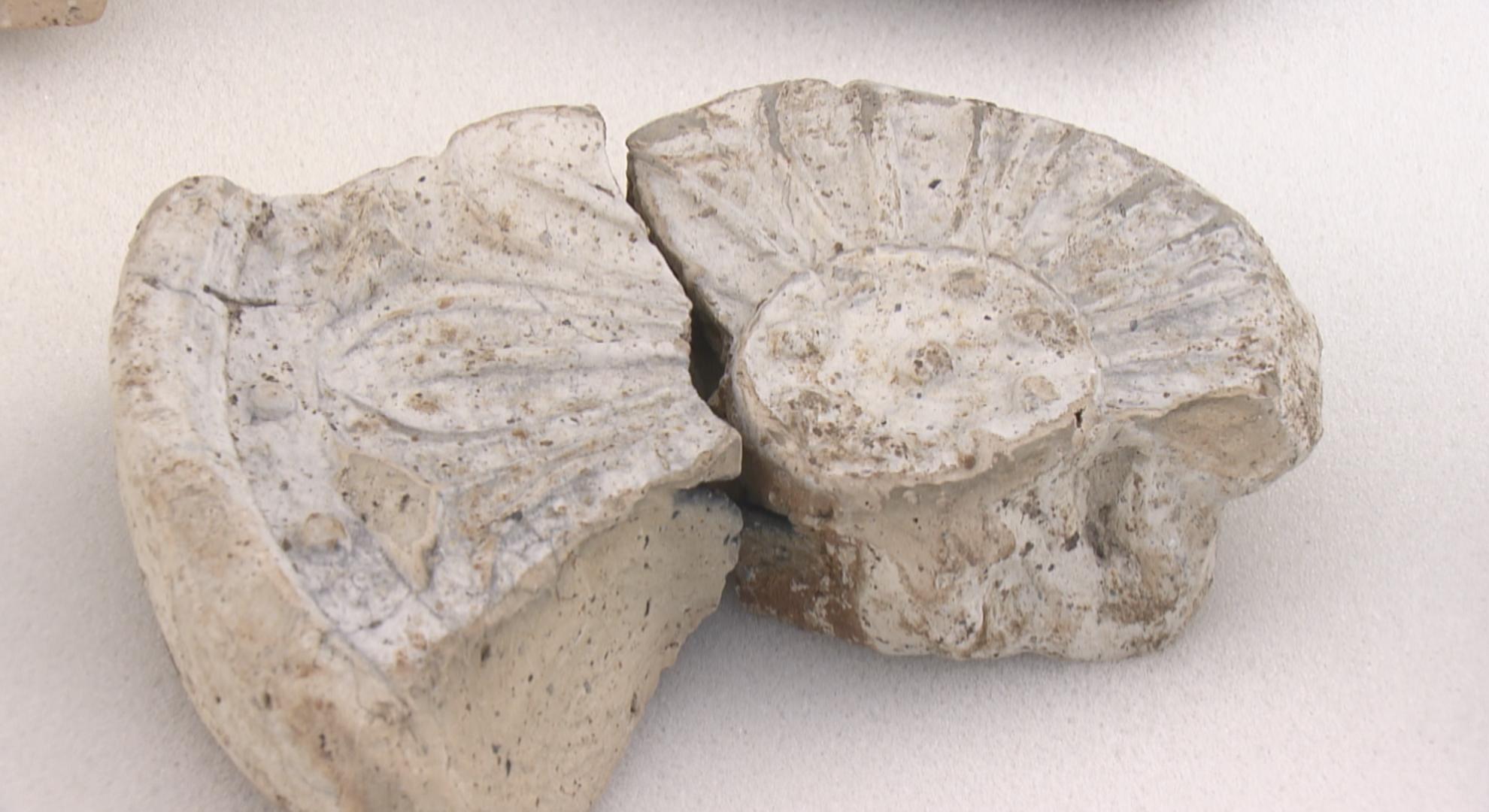 発掘調査ではおよそ1300年前、奈良時代のものとみられる「蓮華文様(れんげもんよう)」の瓦が出土。
