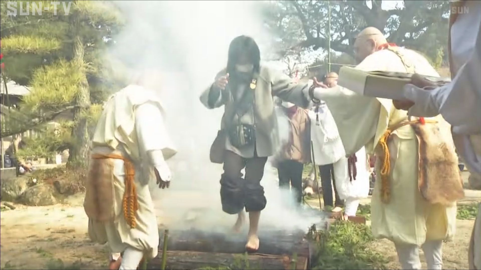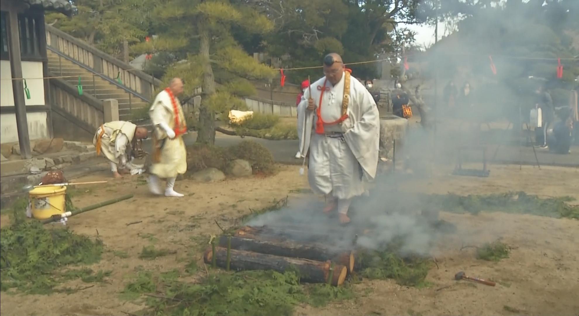 無病息災願い丸太をはだしで歩く「火渡り」 洲本市の安覚寺 2025.01.2623:14 地域・まち 洲本市で行われた伝統行事の「火渡り」 兵庫県洲本市の安覚寺では一年の無病息災を願う伝統行事の「火渡り」が行われました。 洲本市の安覚寺は千年以上にわたって人々の信仰を集める薬師如来がご本尊で、病気や苦痛などの厄災を除くとされています。 1月26日の初薬師大祭では一年の無病息災を願う伝統行事の「火渡り」が行われ、住職らがお経を唱える中、護摩を燃やした後の丸太の上を住民たちがはだしで歩きました。 参加した人たちは丸太の上を素早く渡り、一年の無事を祈りました。 #安覚寺 #洲本市 #火渡り 記事のギャラリーを見る ニュース一覧へ戻る