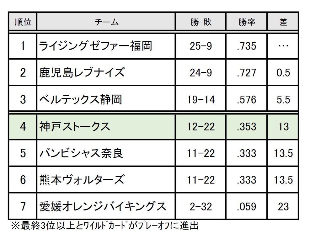 神戸ストークスは下位の愛媛と星を分け、B2西地区4位と“借金”10は変わらない。