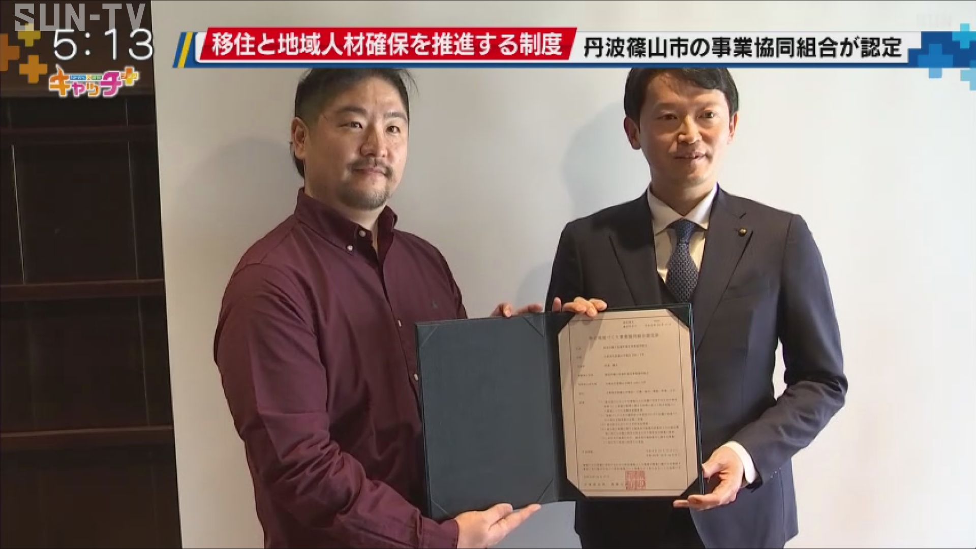 過疎地域での移住促進と地域の人材確保を推進する制度に丹波篠山市の事業協同組合が認定され、30日、認定証の交付式が行われました。