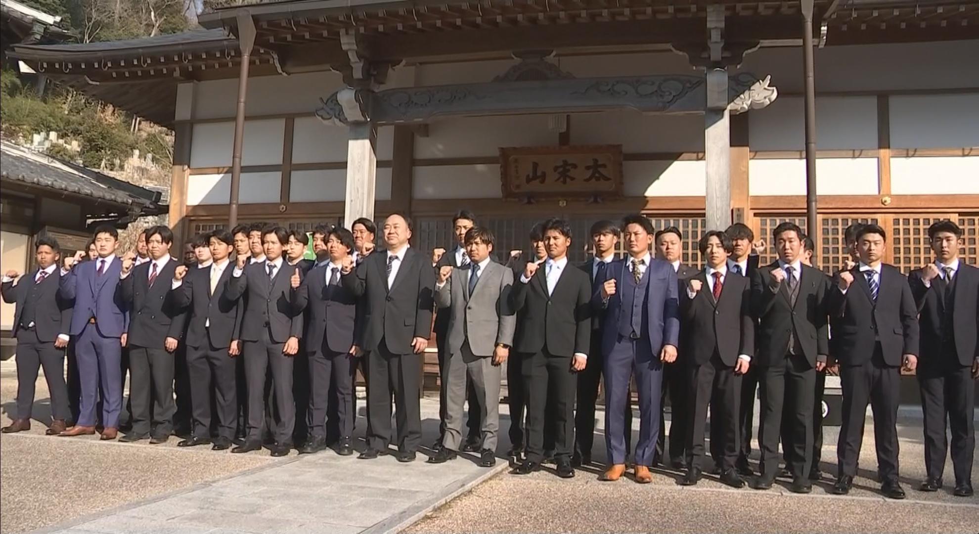 さわかみ関西独立リーグで戦う兵庫ブレイバーズは2月1日、雷除けの寺として知られる兵庫県三田市桑原(くわばら)の欣勝寺(きんしょうじ)を訪れ、今シーズンの必勝を祈願しました。