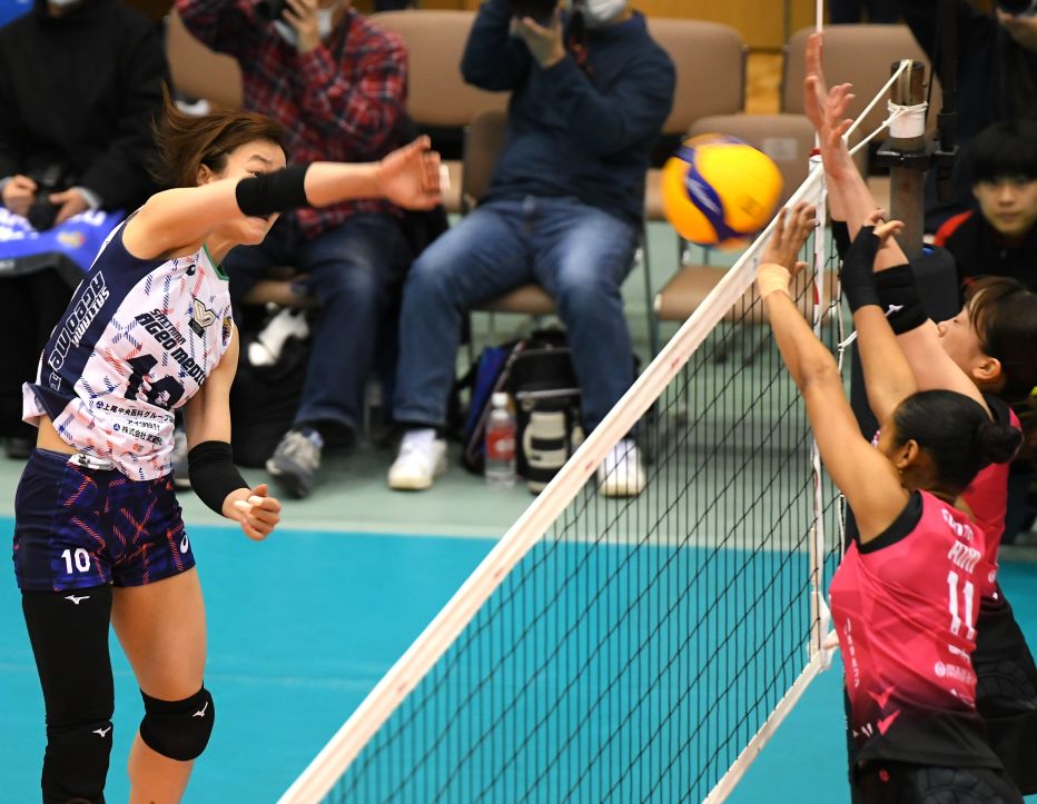 井上が20得点、宮部がブロック6本を含む23得点を挙げ食い下がったが、セッター・岩崎こよみ(日本代表)を“司令塔”に、佐藤優花キャプテン、サラ・ロゾ(パリ五輪代表=セルビア)、黒後愛(日本代表)を中心とする埼玉上尾の攻撃力が一枚上だった。