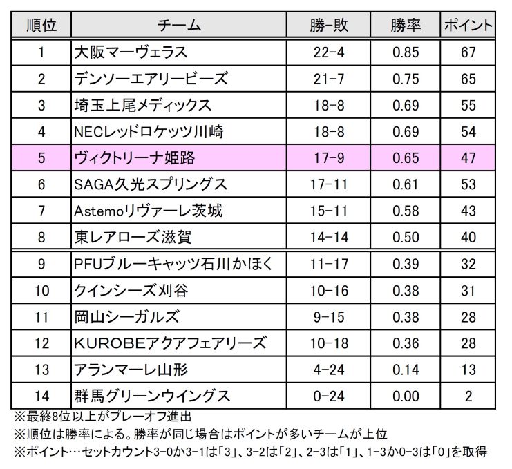 ヴィクトリーナ姫路は今シーズン初の連敗を喫し、17勝9敗で3位から5位に後退した。