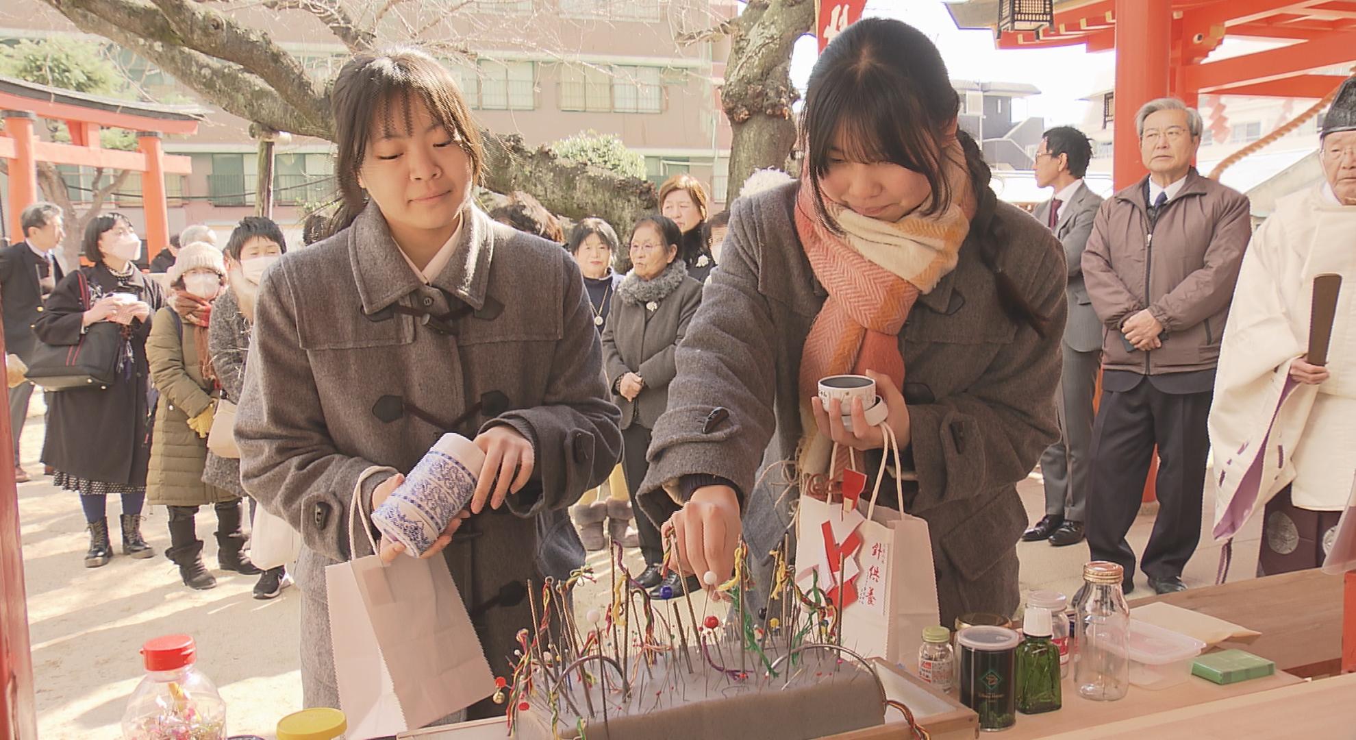 参拝者は役目を終えた針に感謝の気持ちをささげるとともに、裁縫技術の上達を祈っていました。