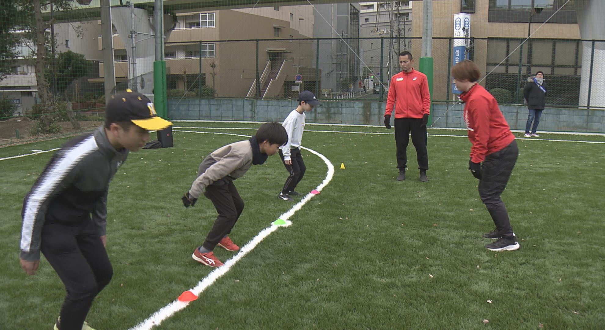 また、サッカーJ1ヴィッセル神戸のコーチ陣は、ディフェンスなどの動きを取り入れた体幹トレーニングなどを指導。