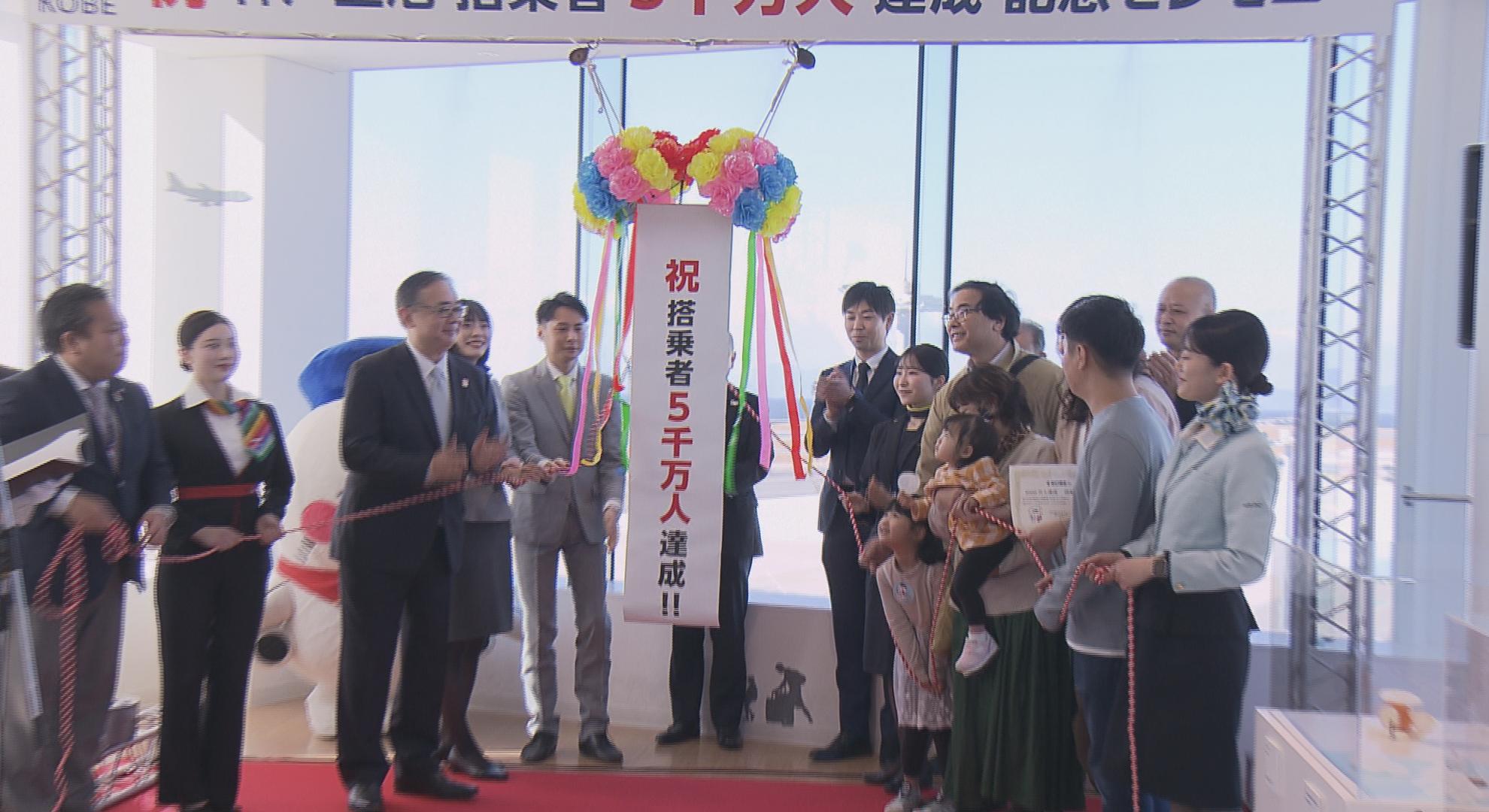 神戸空港の搭乗者数が開港以来5000万人に達し、記念のセレモニーが行われました。