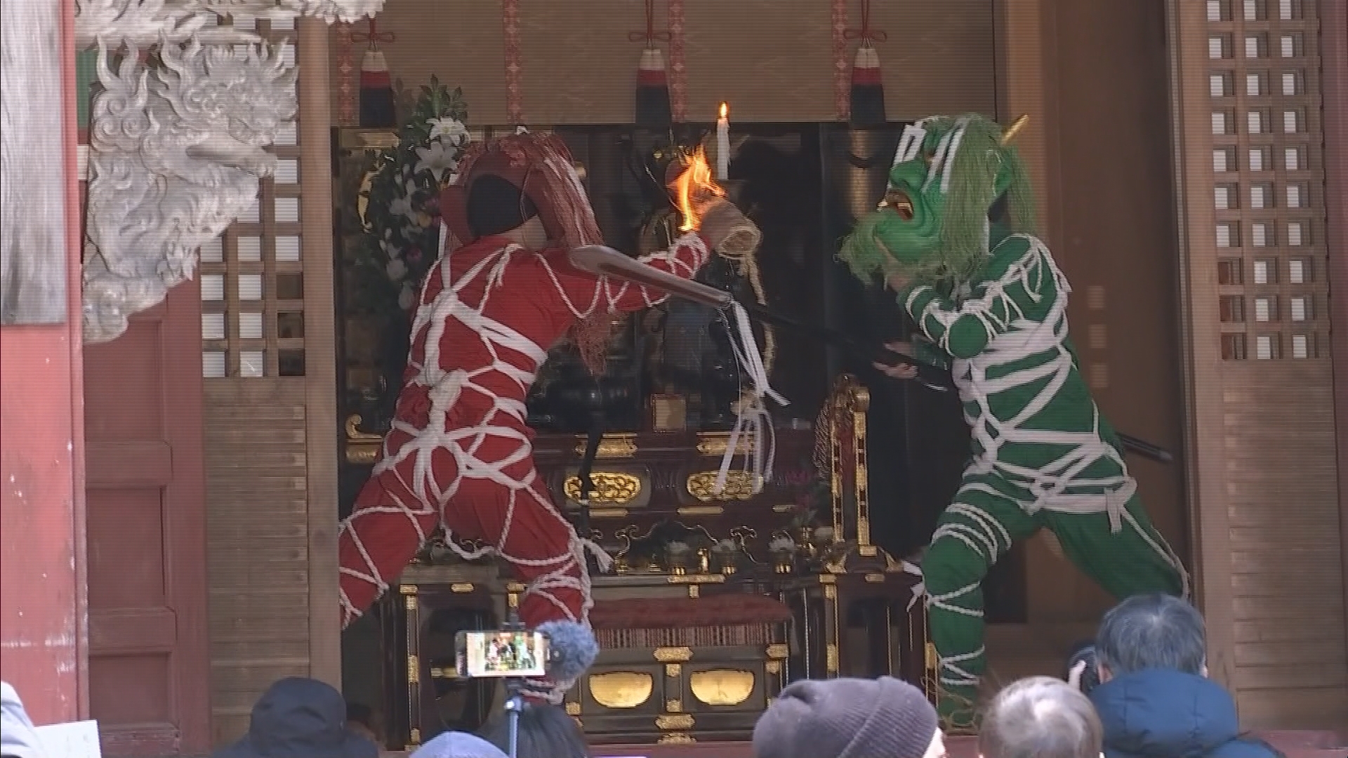 兵庫県丹波市の寺では、無病息災や五穀豊穣を願い鬼たちが練り歩く厄払いの伝統行事「鬼こそ」が行われました。