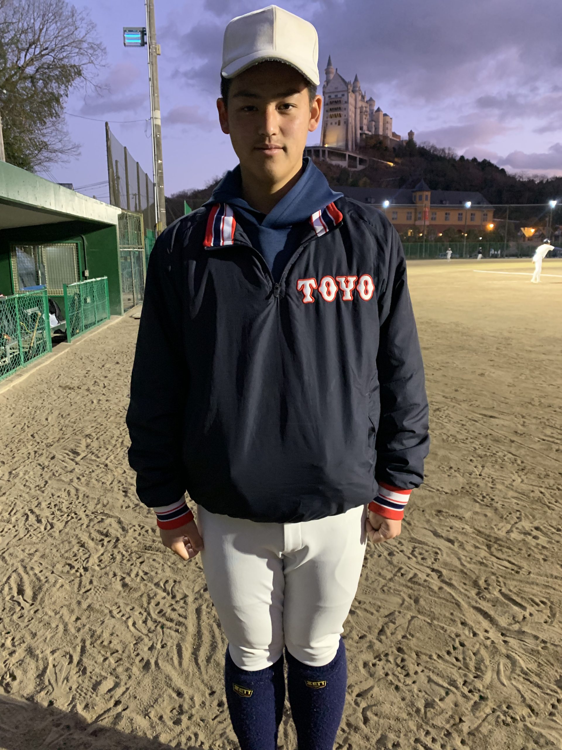 東洋大姫路高では、1年春からベンチ入りし、1年秋から背番号「1」。