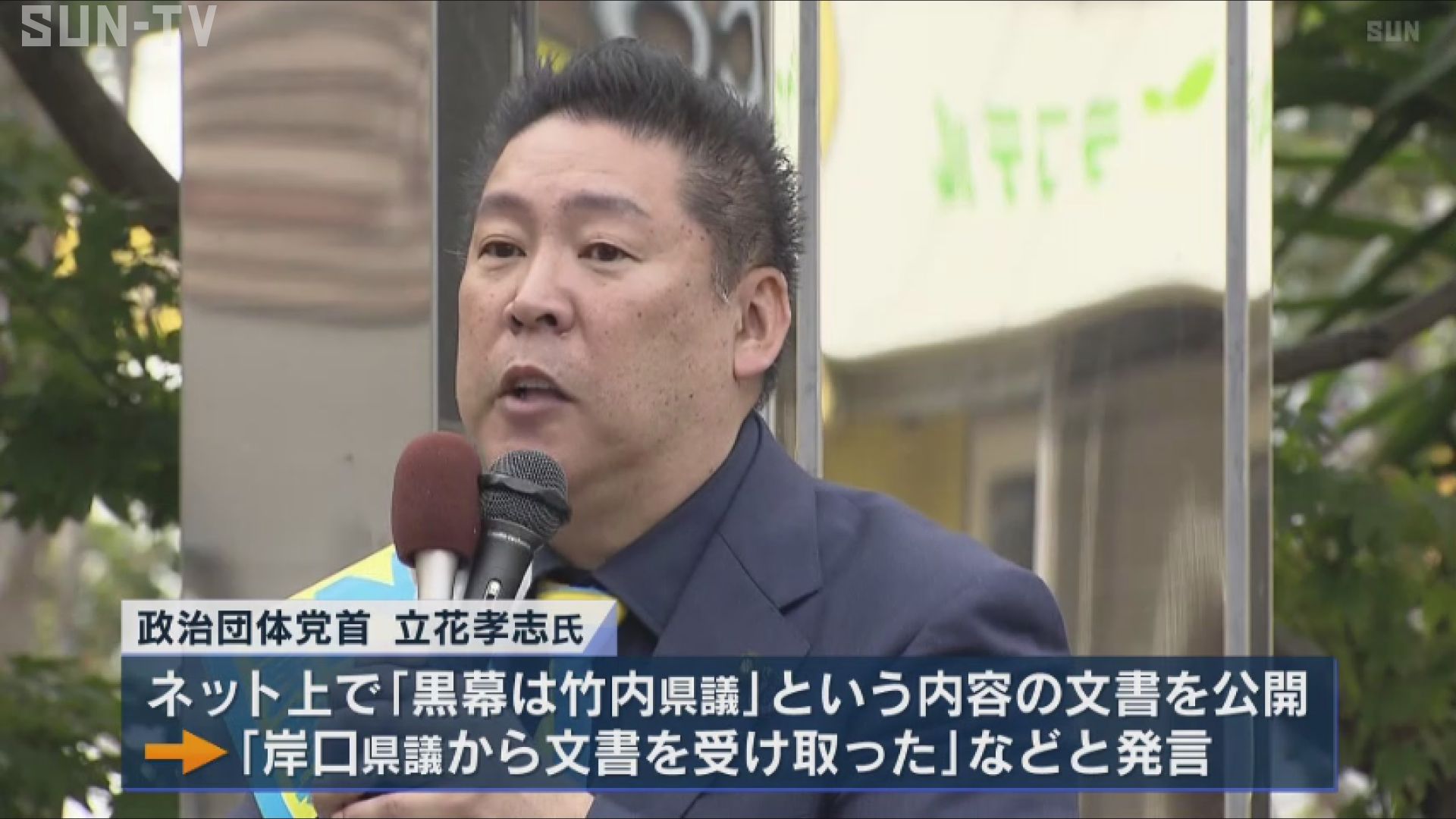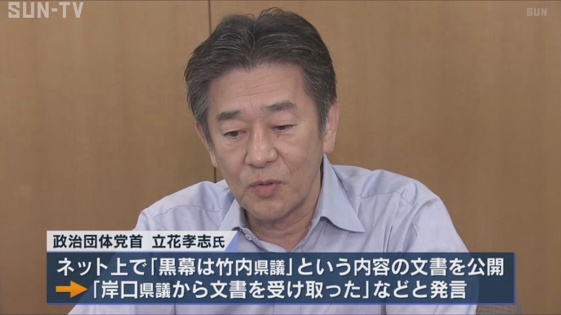 立花さんはネット上で「知事失職を狙った黒幕が竹内県議」などという旨の文書を公開していましたが、「岸口県議から文書を受け取った」などとも発言しました。