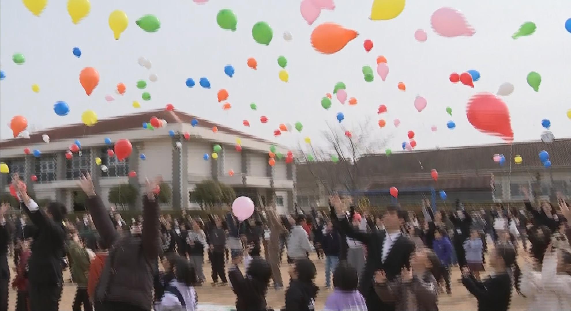 最後に大空に向かって風船を飛ばした参加者は、長年、地域とともに歩んできた母校に別れを告げていました。