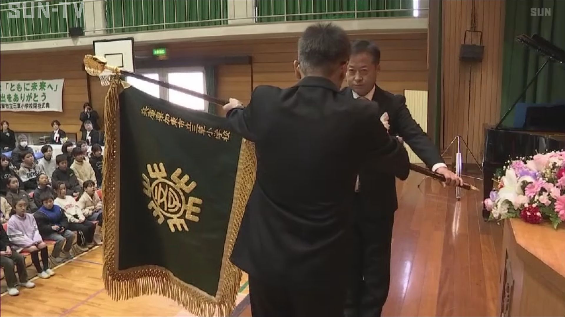 閉校式では、長年親しまれてきた校歌を児童らが思いを込めて歌った他、学校旗の返納も行われ、児童代表が、母校への思いや感謝を伝えました。