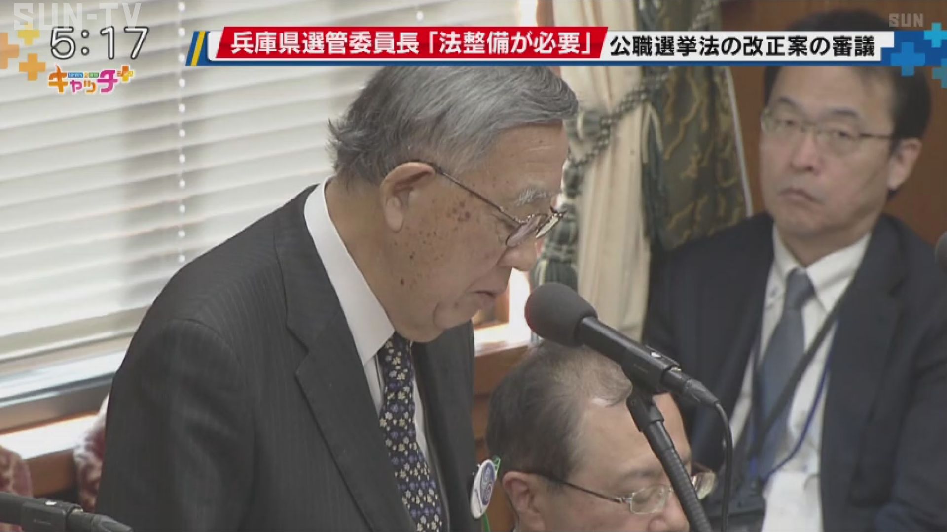 兵庫県の選挙管理委員会の永田秀一委員長は20日、衆議院の政治改革特別委員会で、去年の県知事選で問題視された、他の候補の当選を目的に立候補する「2馬力」行為などについて「法整備が必要」と述べました。
