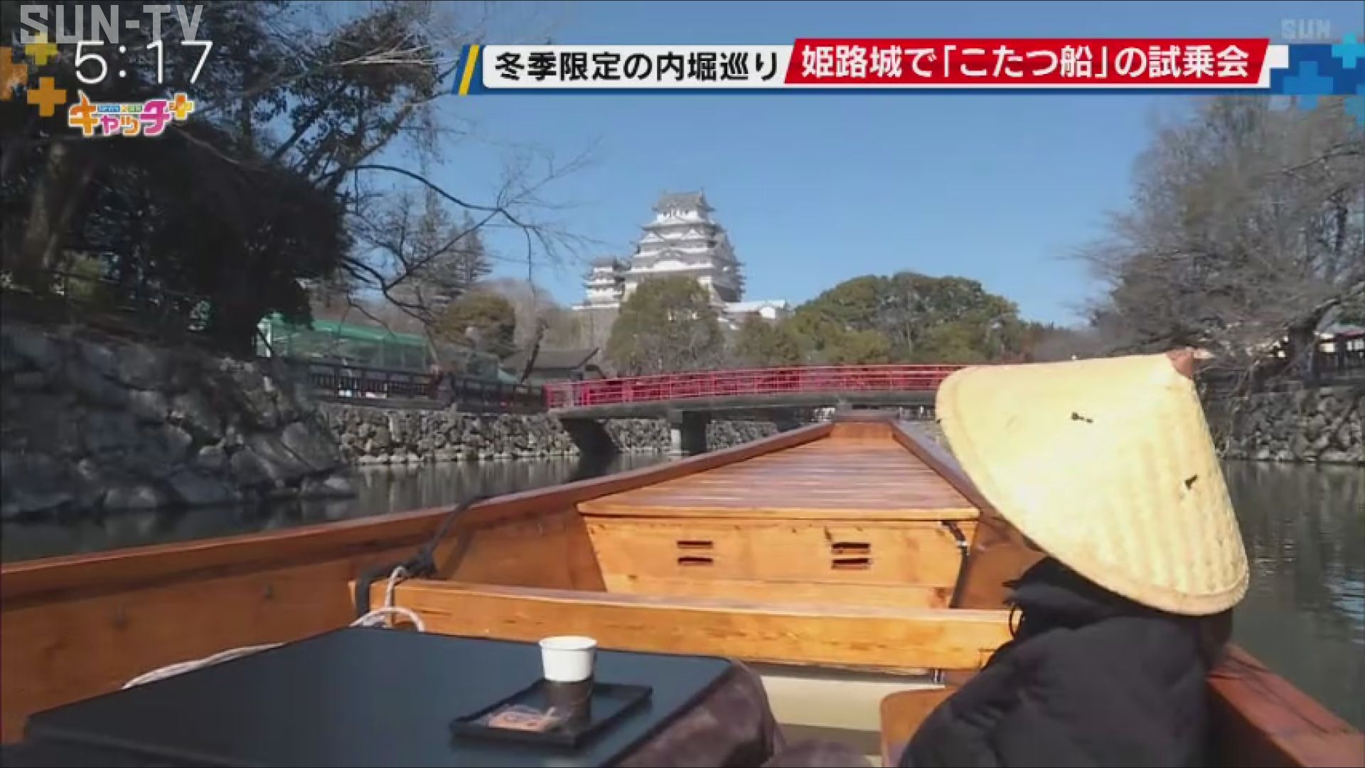 姫路城の内堀を巡る「こたつ船」は、寒さが残る時期の観光を促進しようと、姫路市が2024年に初めて企画し、2025年からは姫路藩和船文化協議会が主催しています。