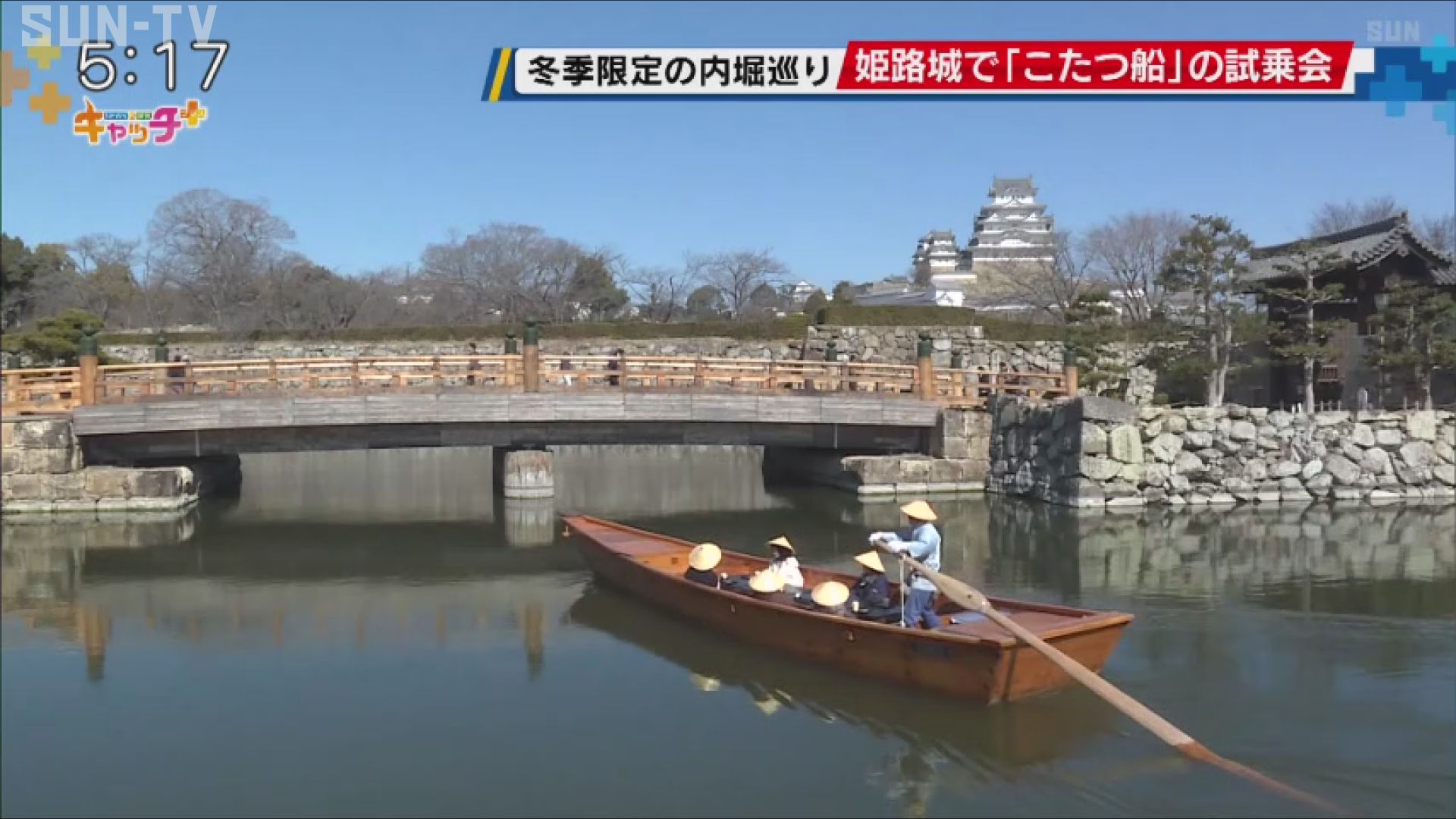 姫路城の内堀をこたつが設置された和船で巡るツアーが、2025年3月に期間限定で運航されるのを前に25日、関係者向けの試乗会が行われました。