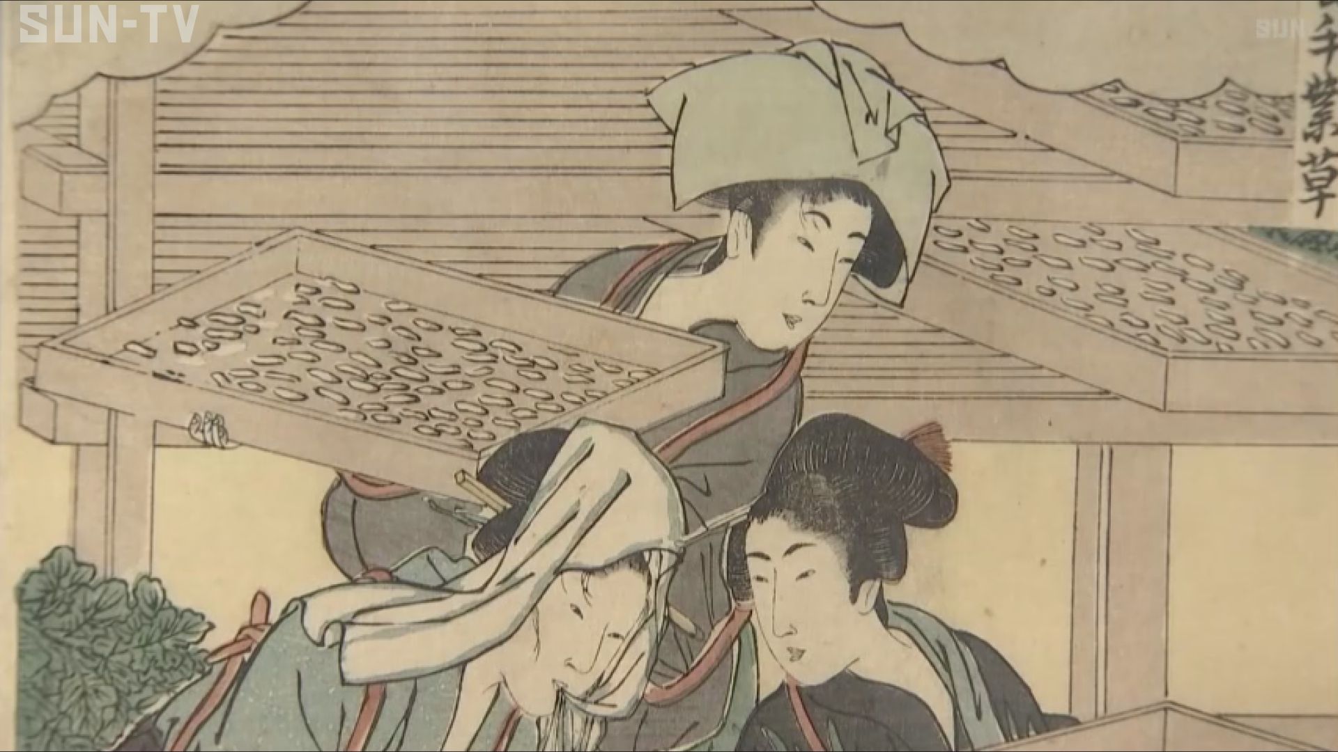 喜多川歌麿が描く浮世絵の世界 養父市で企画展 2025.02.2715:17 地域・まち 江戸時代の浮世絵師・喜多川歌麿が描いた、絹糸を紡ぐ女性たちの作品展が、養父市八鹿町で開かれています。 養父市のやぶ市民交流広場では、美人画の巨匠として江戸時代に活躍した絵師、喜多川歌麿の浮世絵を紹介する企画展が開かれていて、養蚕をテーマに描かれた歌麿の作品12点が展示されています。 「女職蚕手業草」は養蚕の手順を描いた12枚ひと綴りの作品で、艶めかしい足をあらわに桑の葉を摘む女性の様子や、蚕の世話をしながら会話を楽しむ女性たちが描かれています。 企画展は3月2日まで開かれています。 #喜多川歌麿 #浮世絵 #養父市 記事のギャラリーを見る ニュース一覧へ戻る