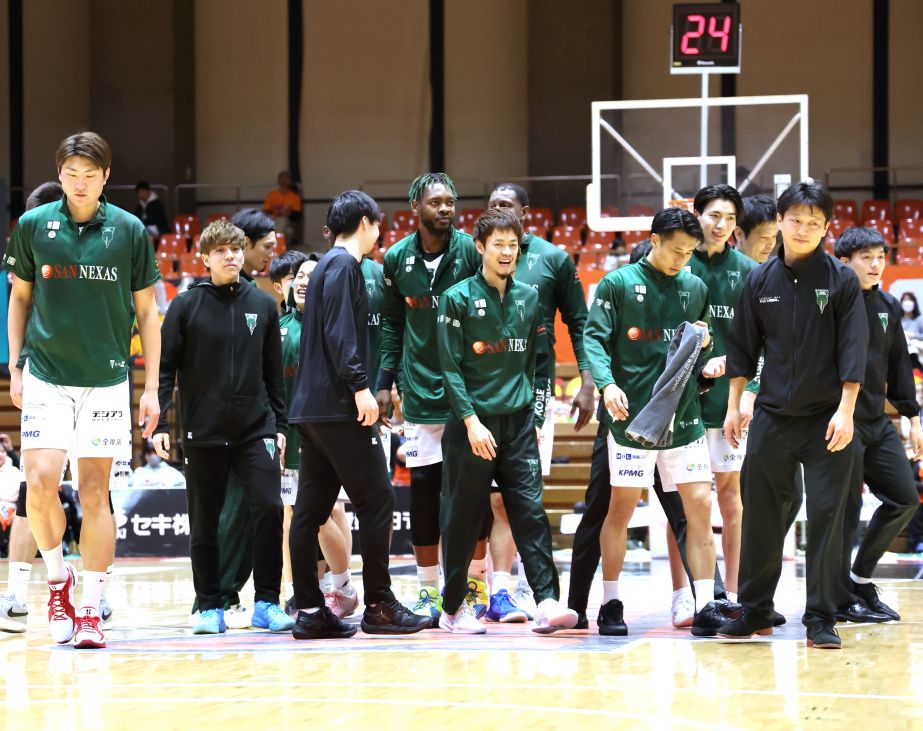 新しい指揮官にはアシスタントコーチ兼通訳の東頭俊典(とうどう・しゅんすけ)氏が昇格し、初采配の愛媛オレンジバイキングス戦(2/21、2/22)を連続白星で飾った。