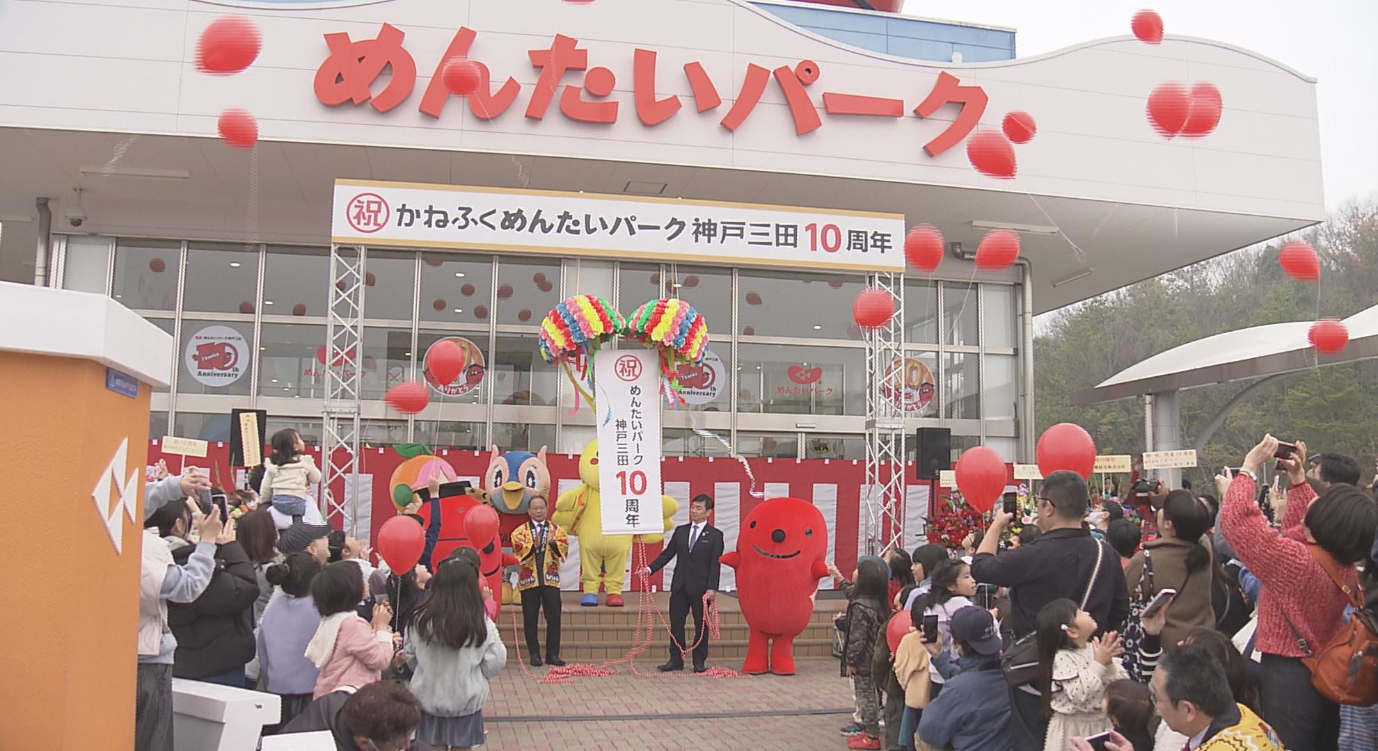 神戸市北区にある明太子のテーマパークが開業10周年を迎え、3月2日に記念のセレモニーが開かれました。