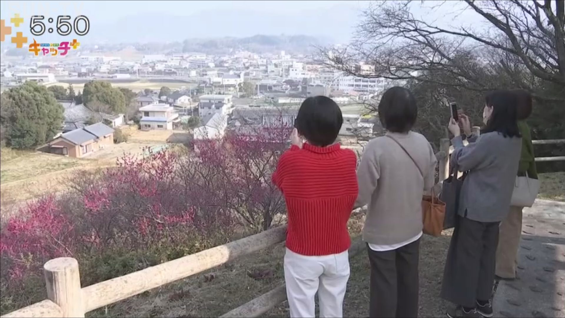 南あわじ市の広田梅林ふれあい公園では、春の訪れを告げるウメの花が見ごろを迎えています。