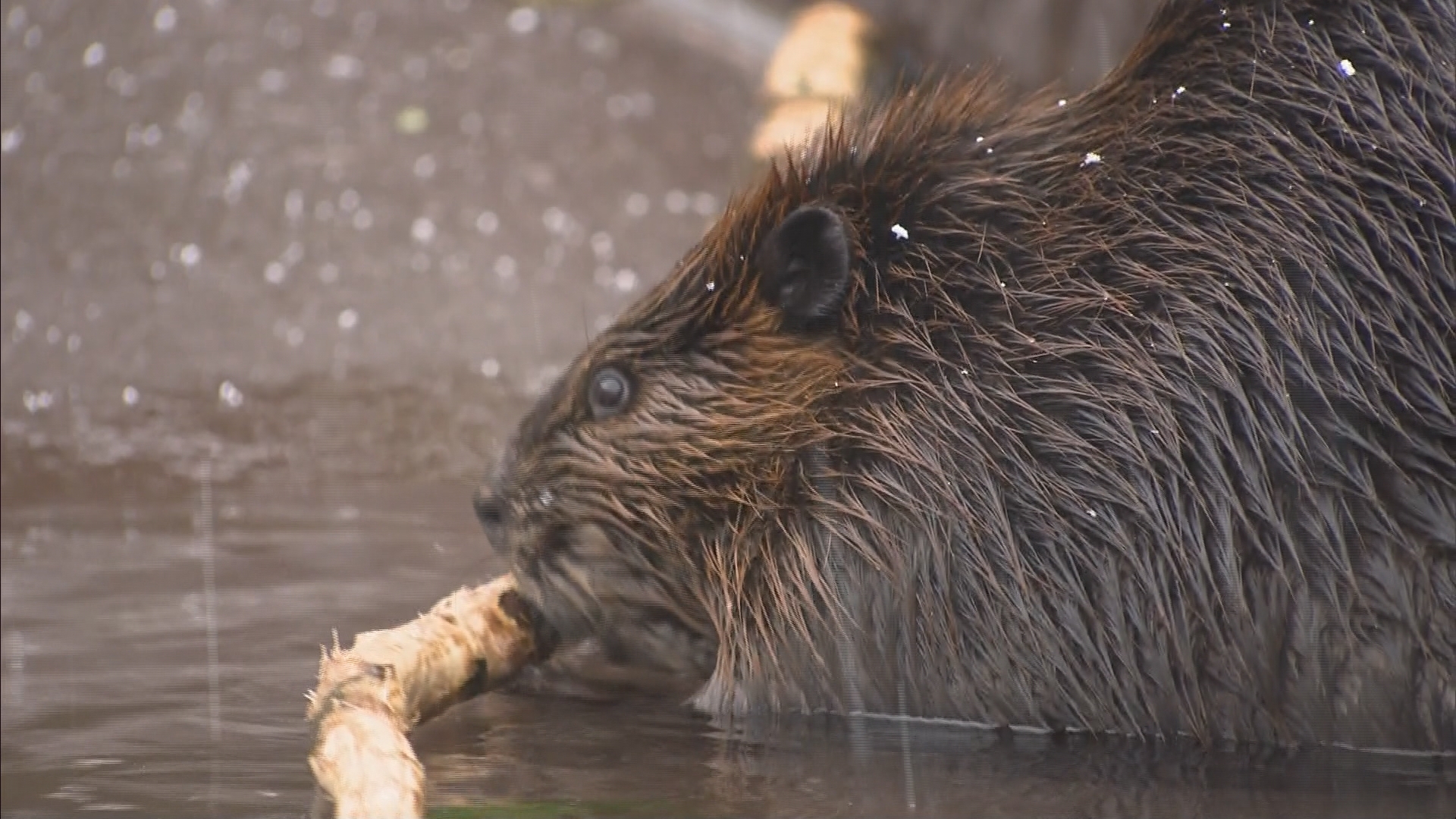 神河町の観光施設「神崎農村公園ヨーデルの森」では3月1日から雄の「ハンター」と雌の「はなび」の2頭のアメリカビーバーが展示され、愛らしい姿を見せています。
