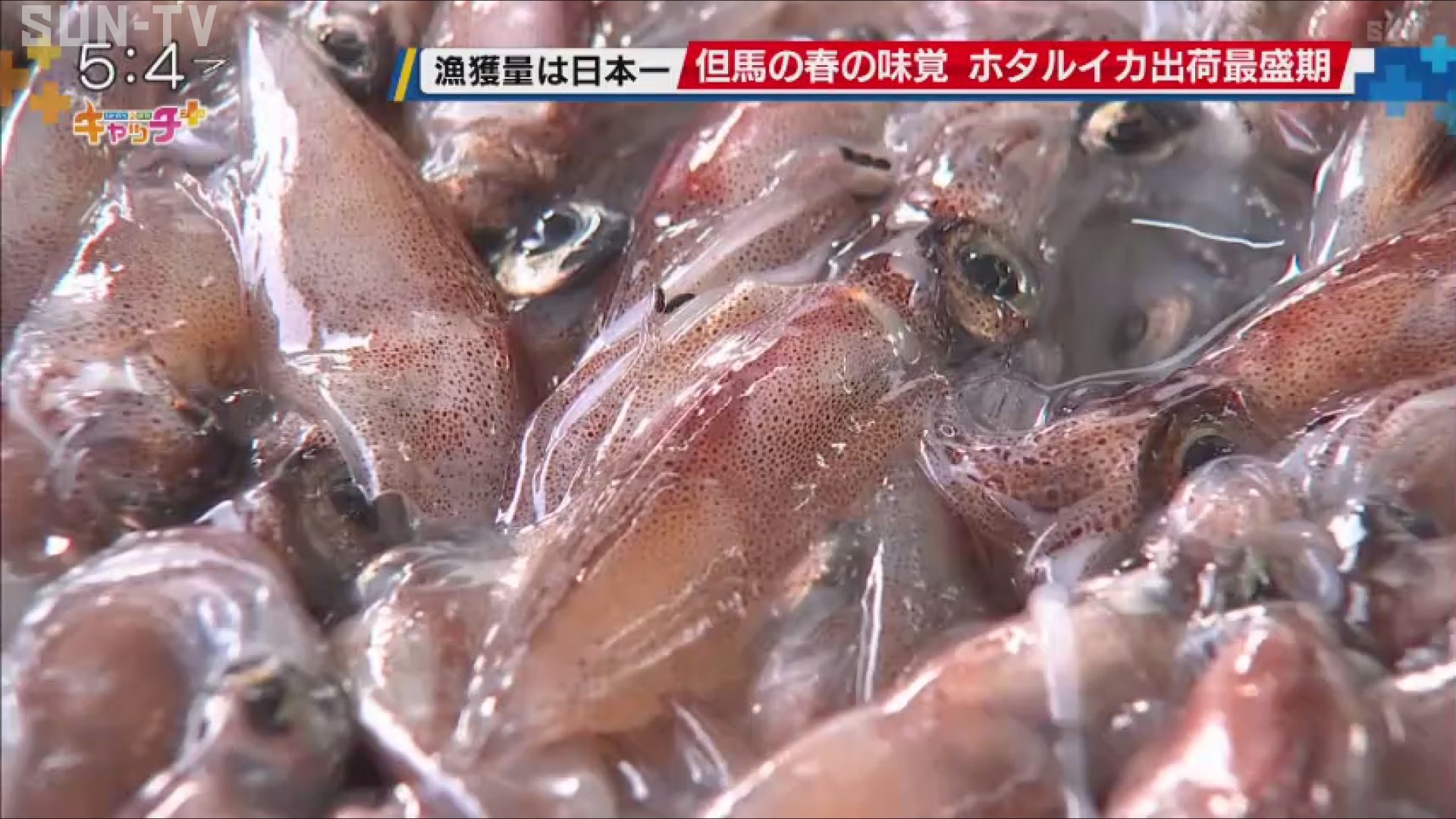 豊岡市の津居山港で、日本海の春の味覚・ホタルイカの出荷が最盛期を迎えています。